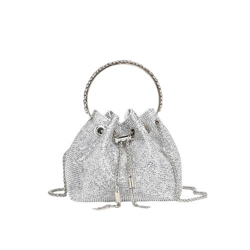Glittering rhinestone-studded acrylic box clutch converts to a chain shoulder bag—perfect sparkle for weddings, galas and nights on the town.