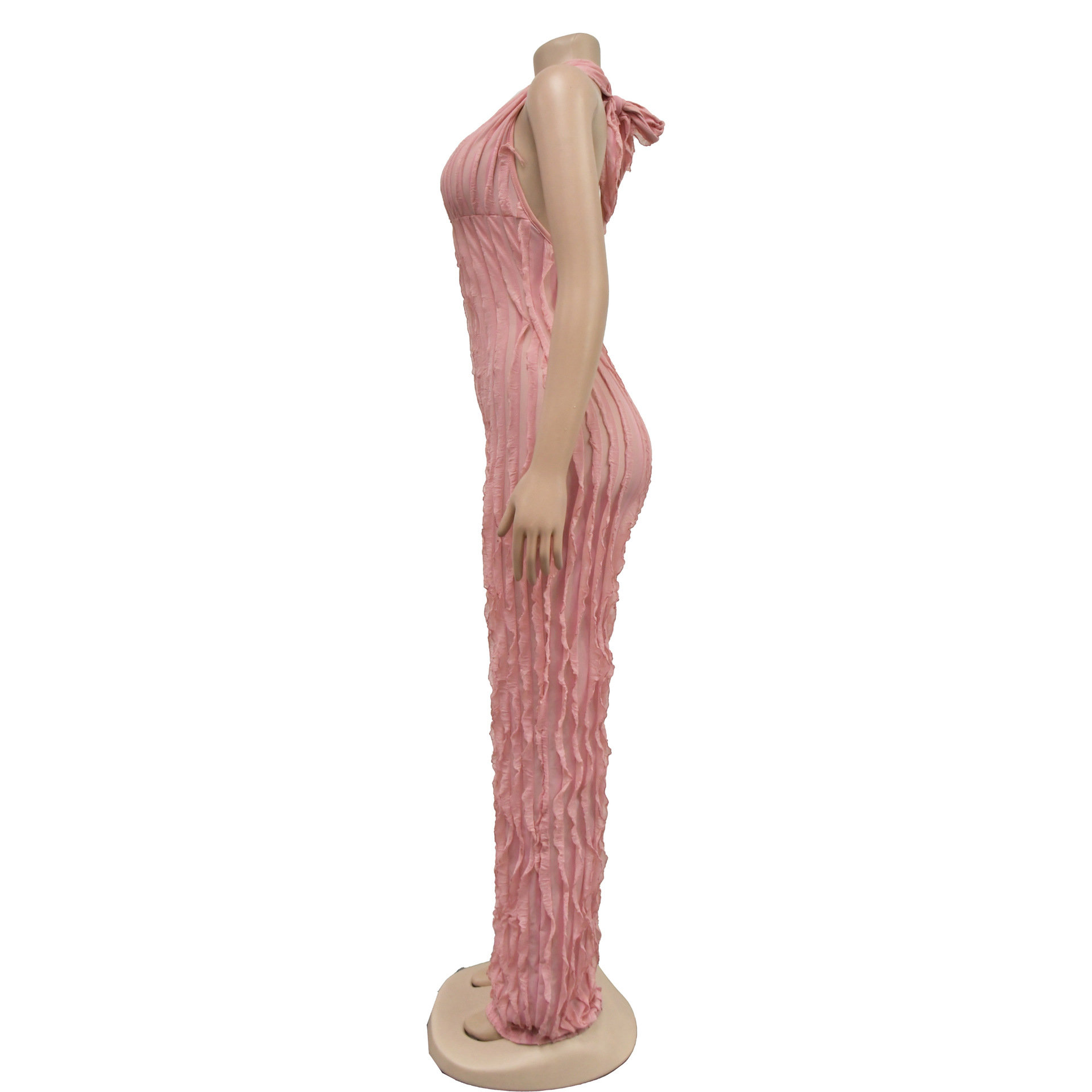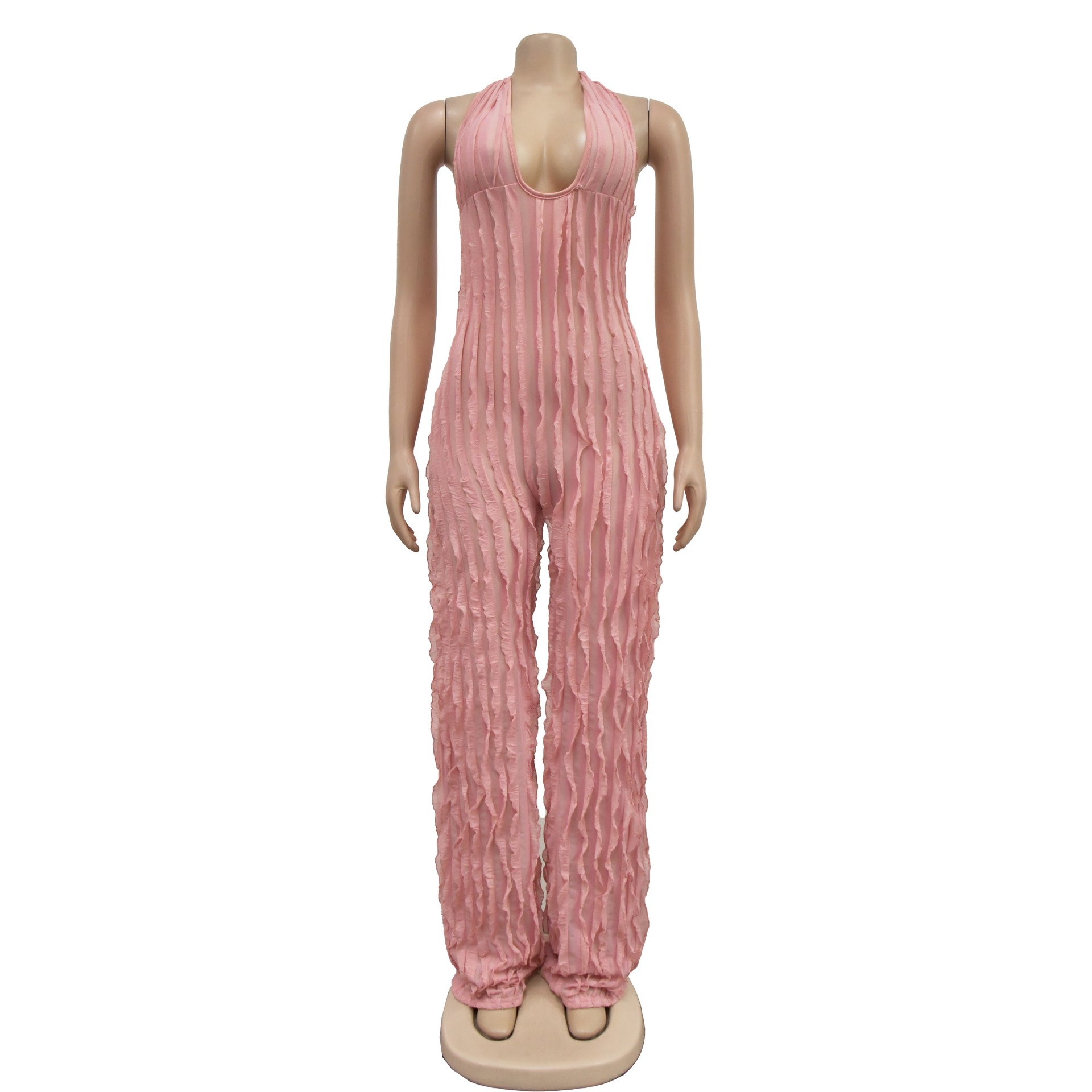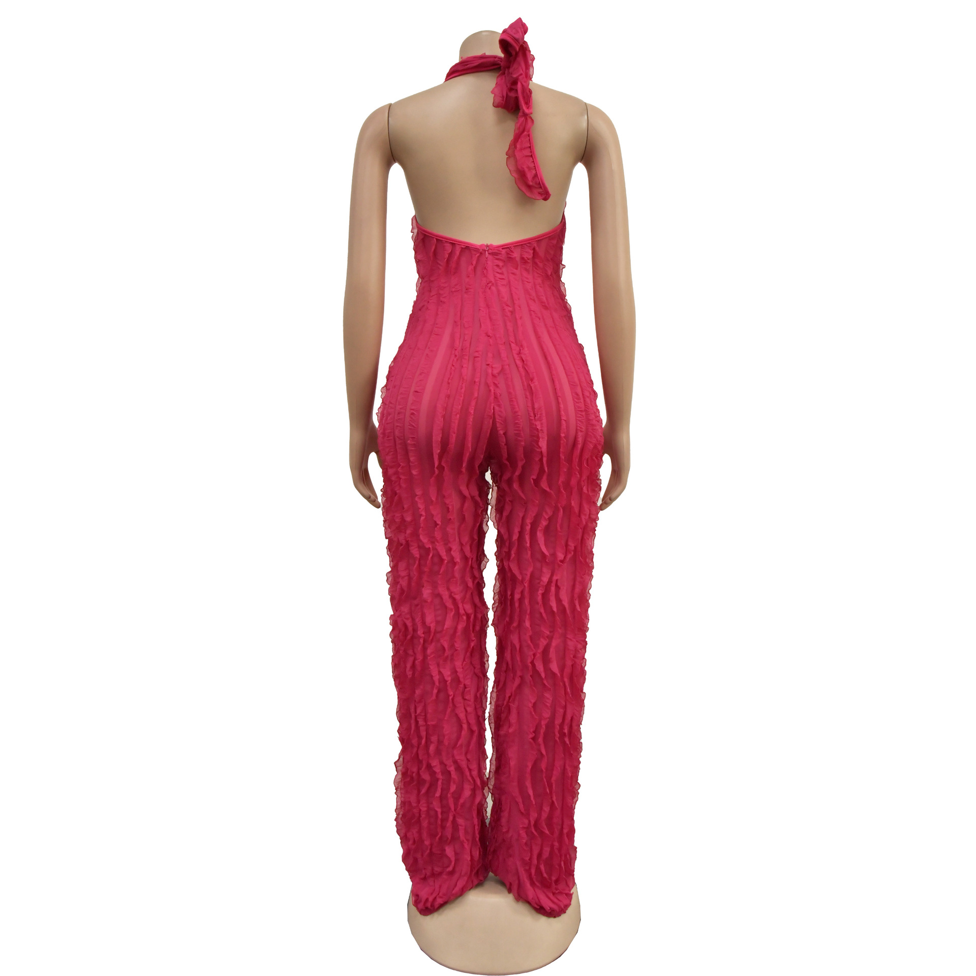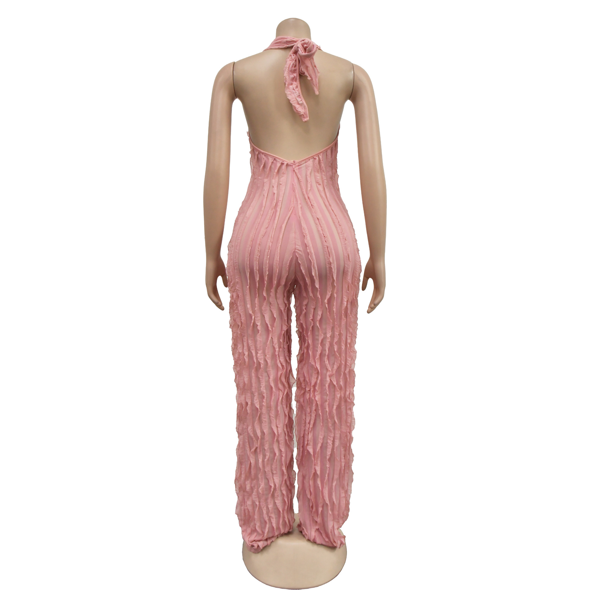 Step into the spotlight with our Women’s Solid Color Backless Deep V Plunge Pleated Halter Jumpsuit the ultimate blend of elegance and bold style. Designed for the modern woman who loves to turn heads, this jumpsuit features a daring deep V neckline and a flattering backless design that exudes confidence and sophistication.