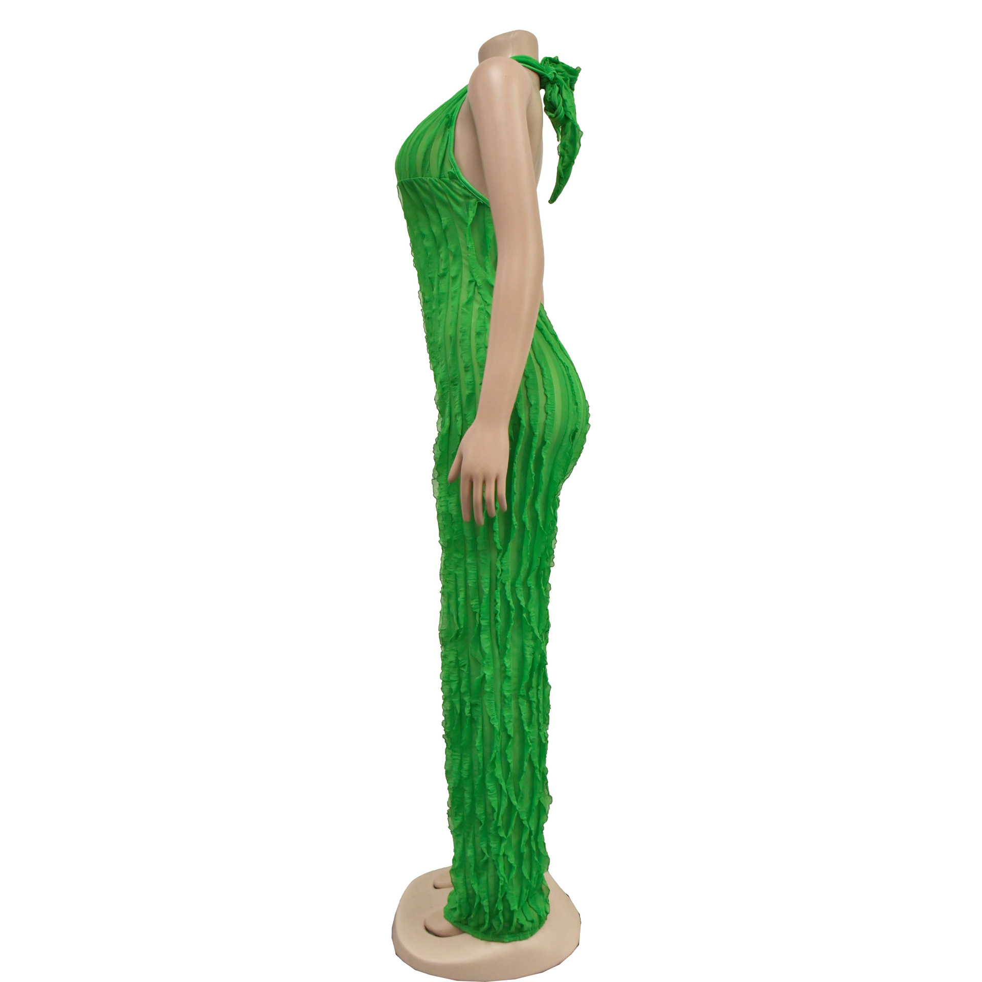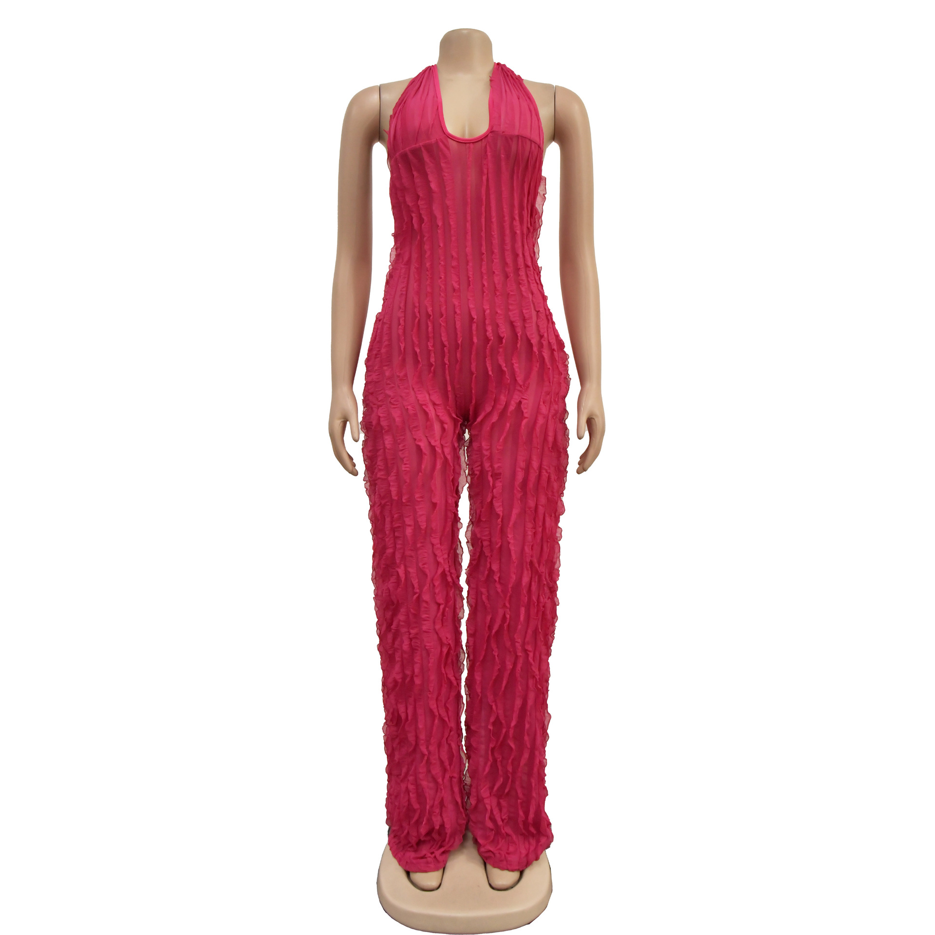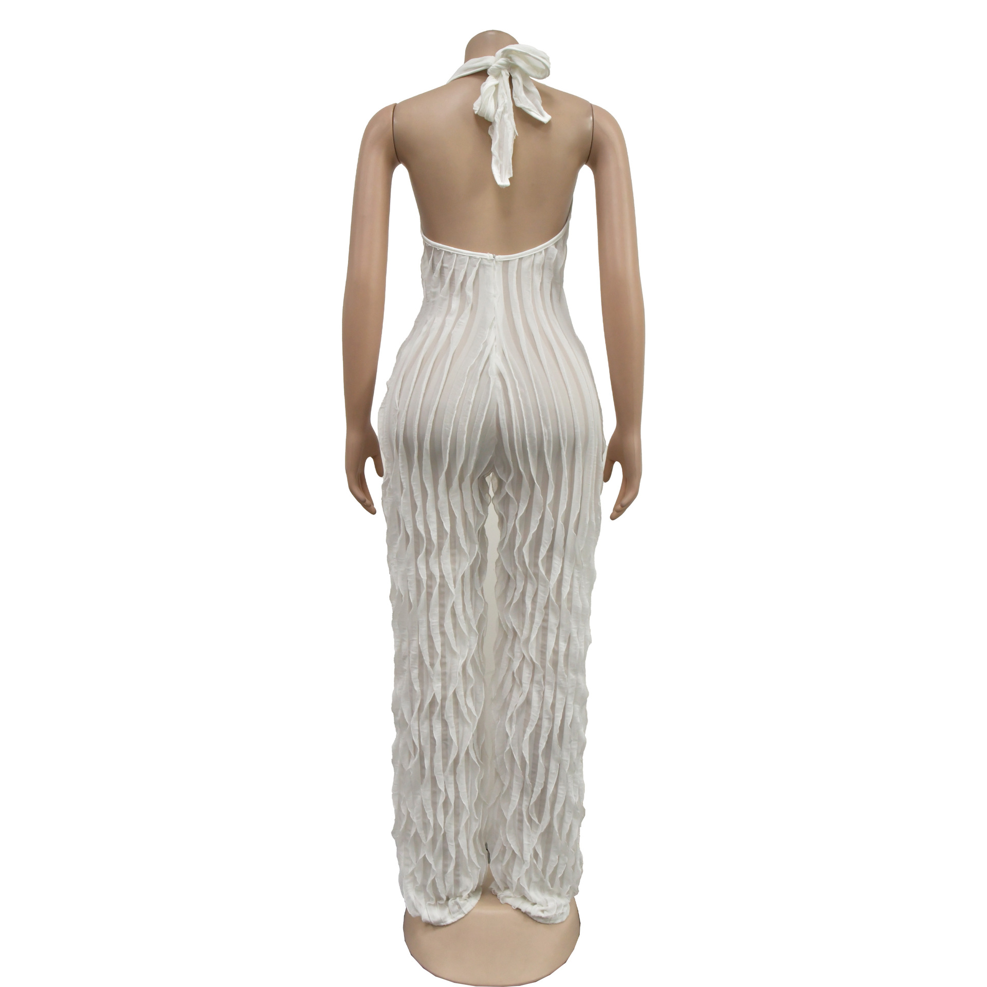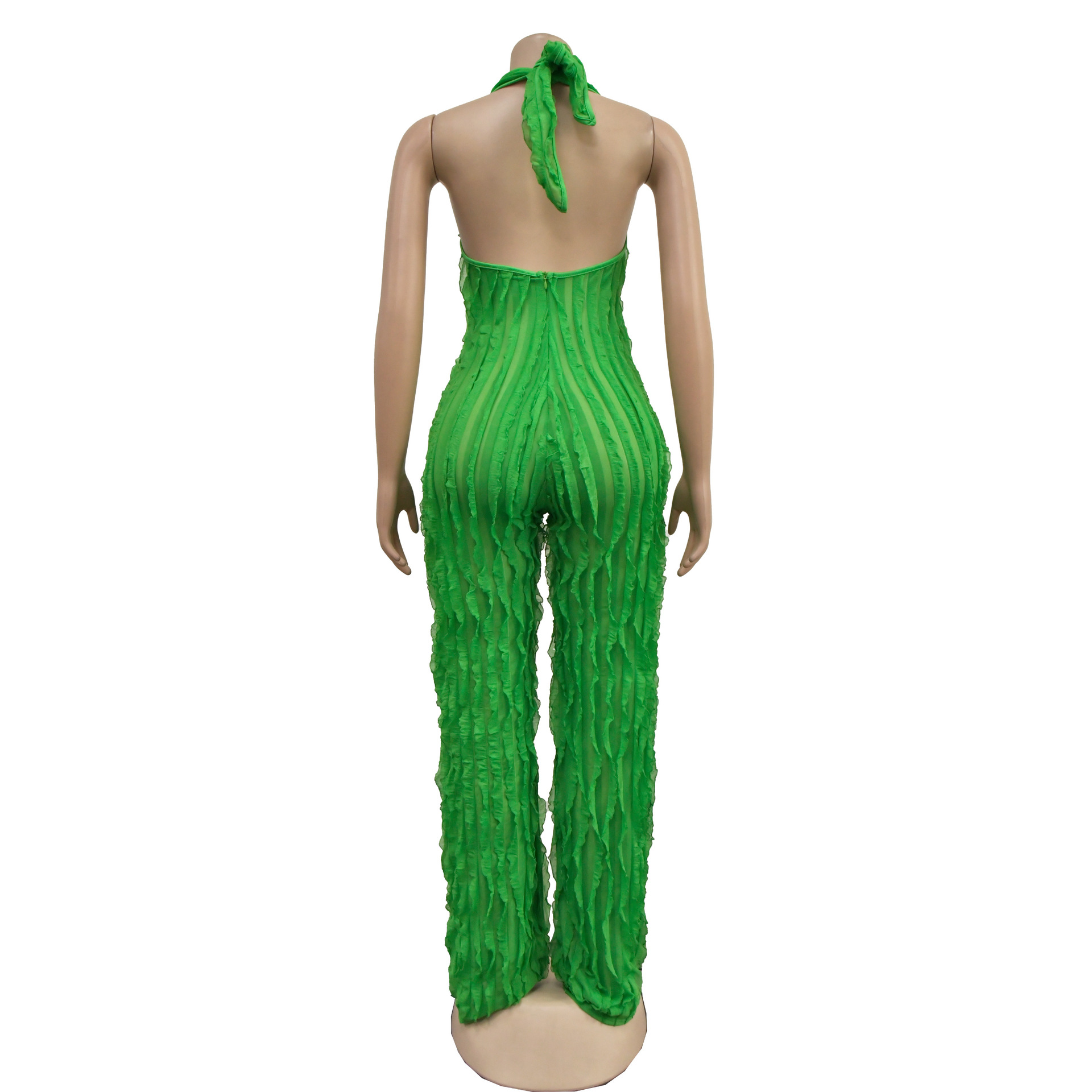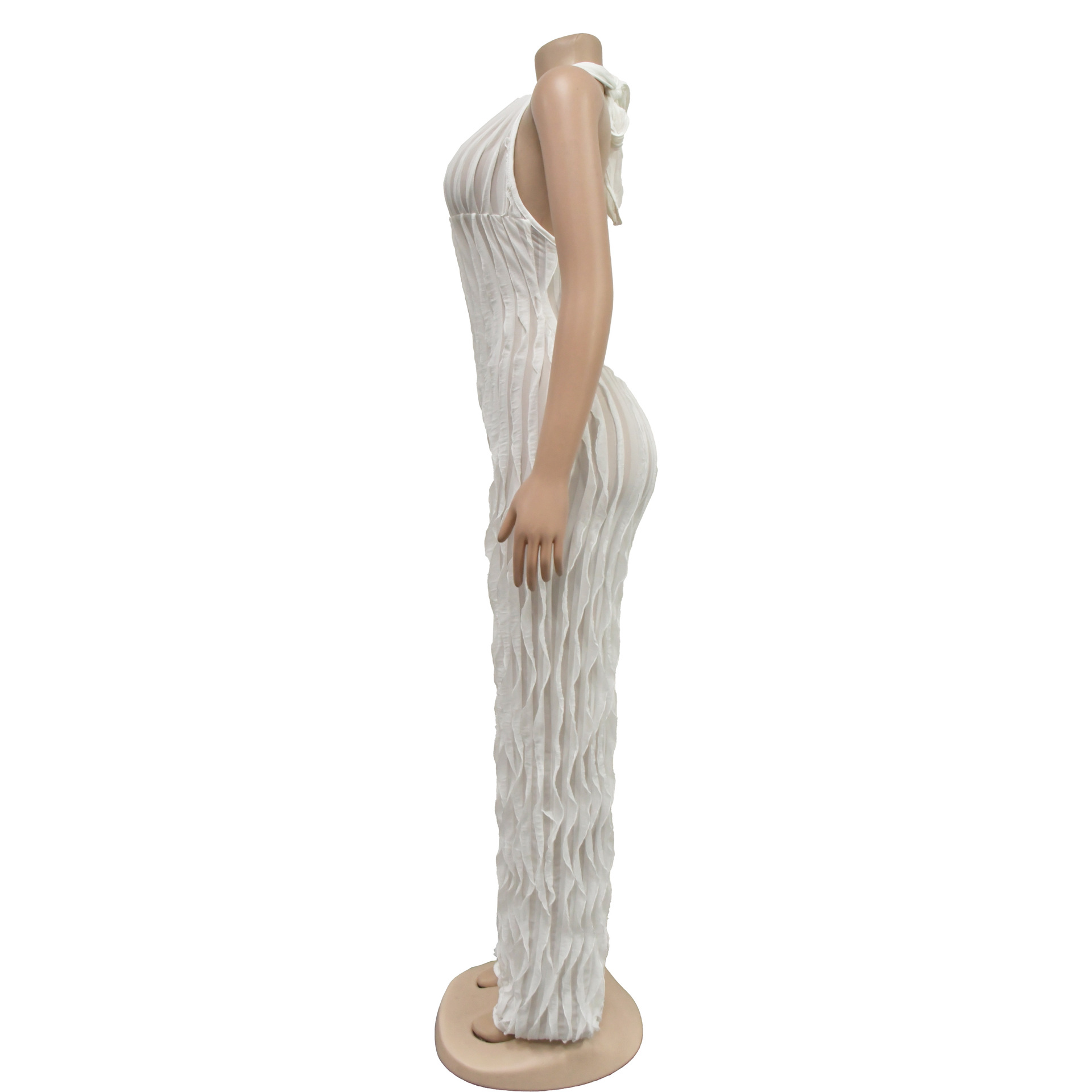 Step into the spotlight with our Women’s Solid Color Backless Deep V Plunge Pleated Halter Jumpsuit the ultimate blend of elegance and bold style. Designed for the modern woman who loves to turn heads, this jumpsuit features a daring deep V neckline and a flattering backless design that exudes confidence and sophistication.