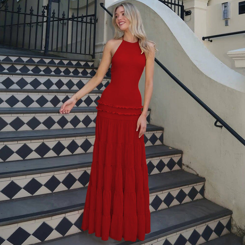 Step into summer with the dress that does it all. The Backless Halter Pleated Maxi Dress is your new go to for everything from sun drenched brunches to dreamy beach walks. With a flattering halter neckline, flirty open back, and flowing tiered skirt, this dress is designed to move with you and turn heads while doing it.
