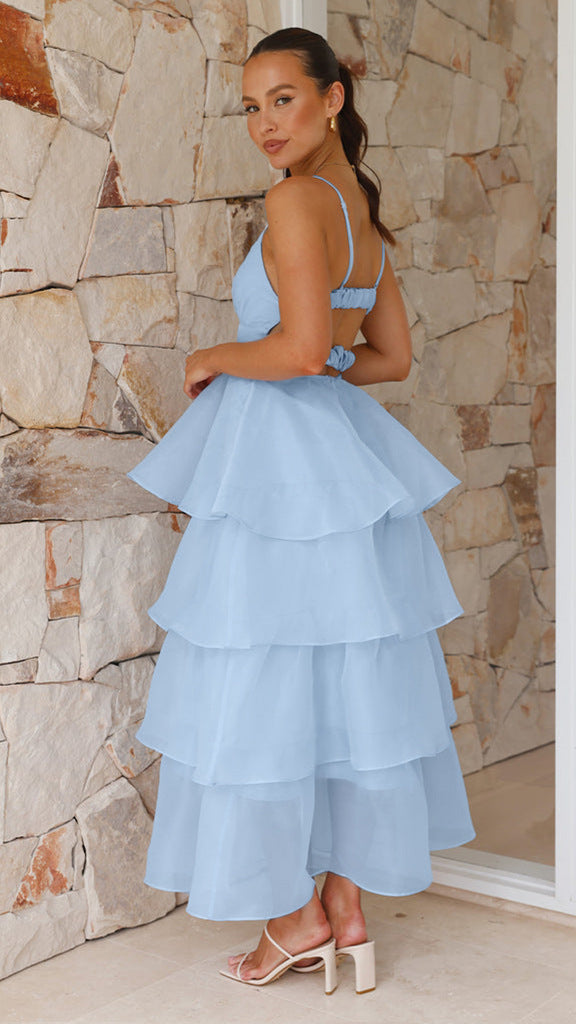Step into the spotlight with Noémi’s Sexy Backless Spaghetti Strap Dress — the ultimate statement piece for your evening occasions.