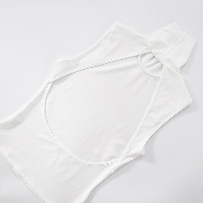Backless Turtleneck Sleeveless Top | White Summer Halter Style | noémi