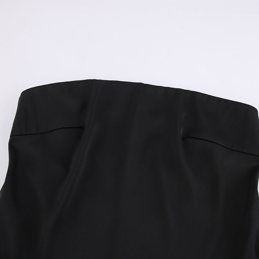 Black Satin Tube Top Dress | High Waist Loose Fit | noémi