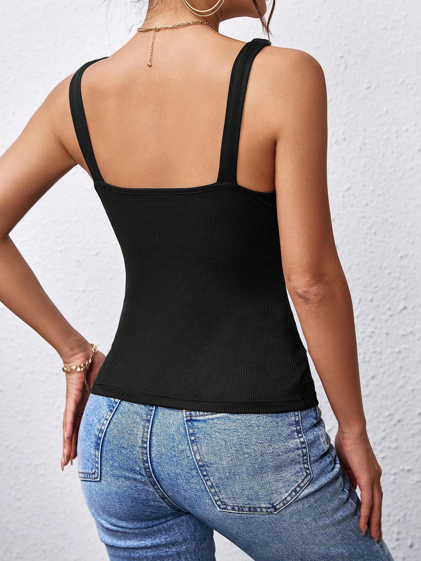 Black Sleeveless Ribbed Top with Chain Straps | UNeck Summer Tank | noémi