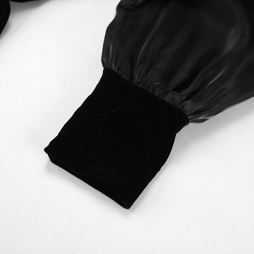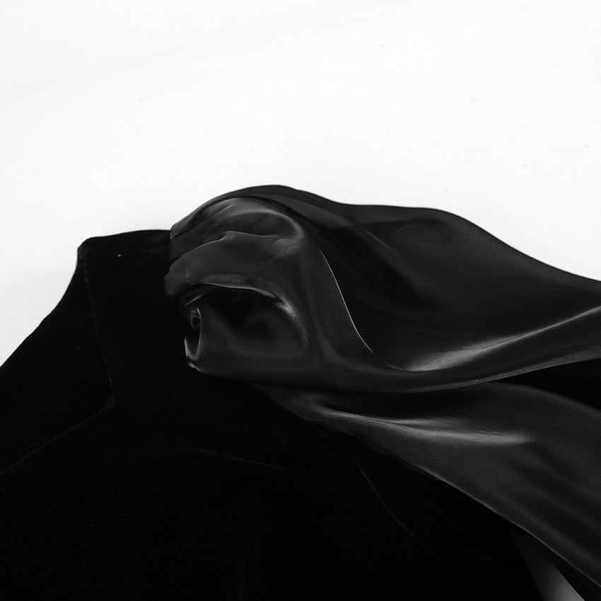 Black Square Neck Puff Sleeve Velvet Knit Dress | noémi