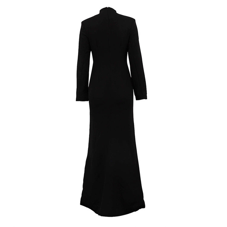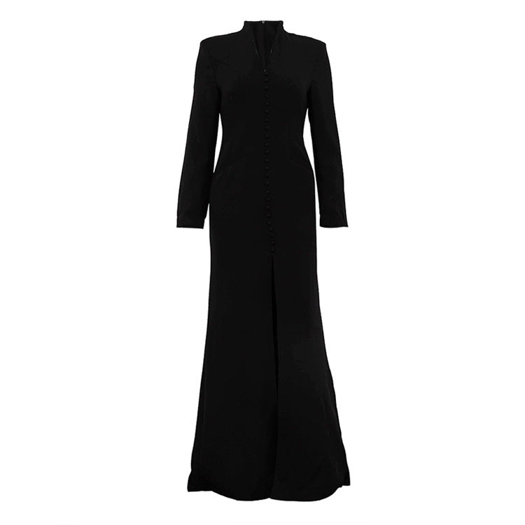 Blazer Gown | Structured Long Sleeve Maxi Dress with Slit, Tuxedo | noémi