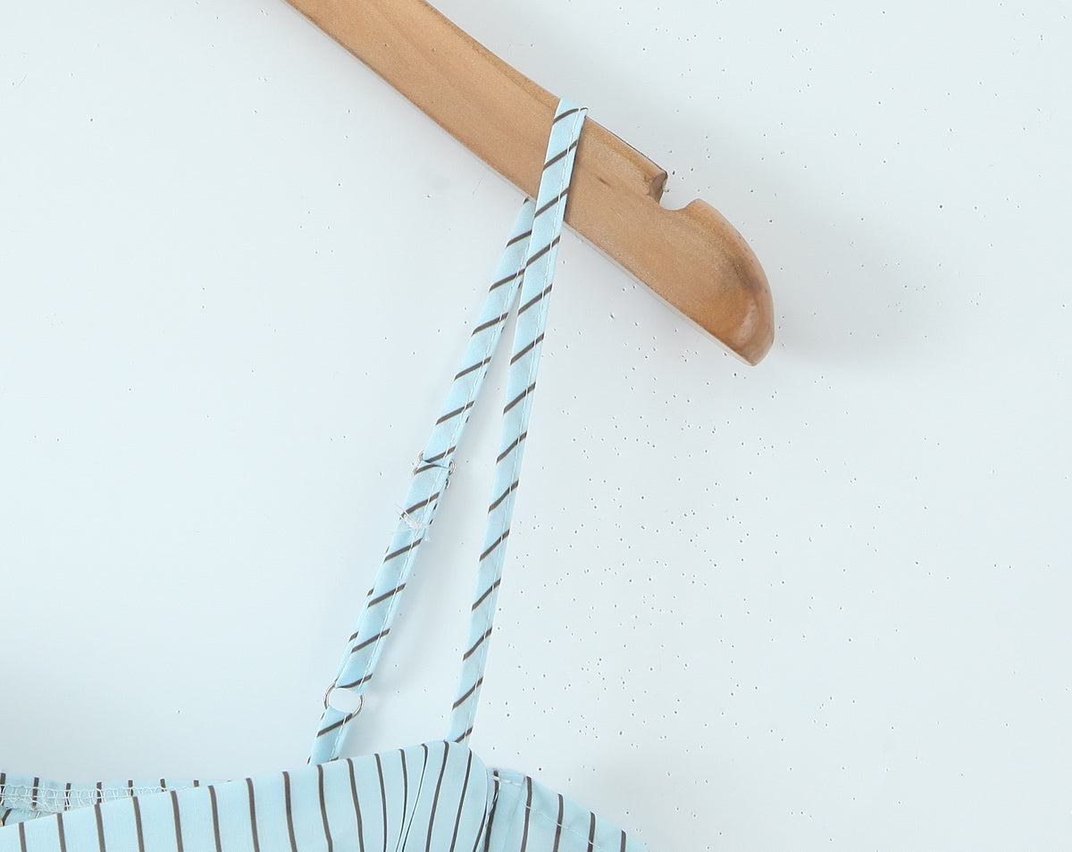 Blue Striped Tube Top with Adjustable Straps | Cinched Waist Slim Fit Vest for Women | noémi