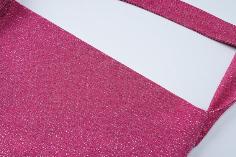 - Halter neckline frames the shoulders and elevates the look
