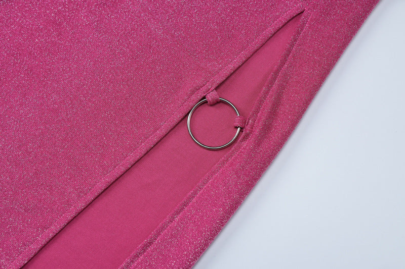 The sleek silhouette and side split offer a confident, minimal profile with standout texture.
