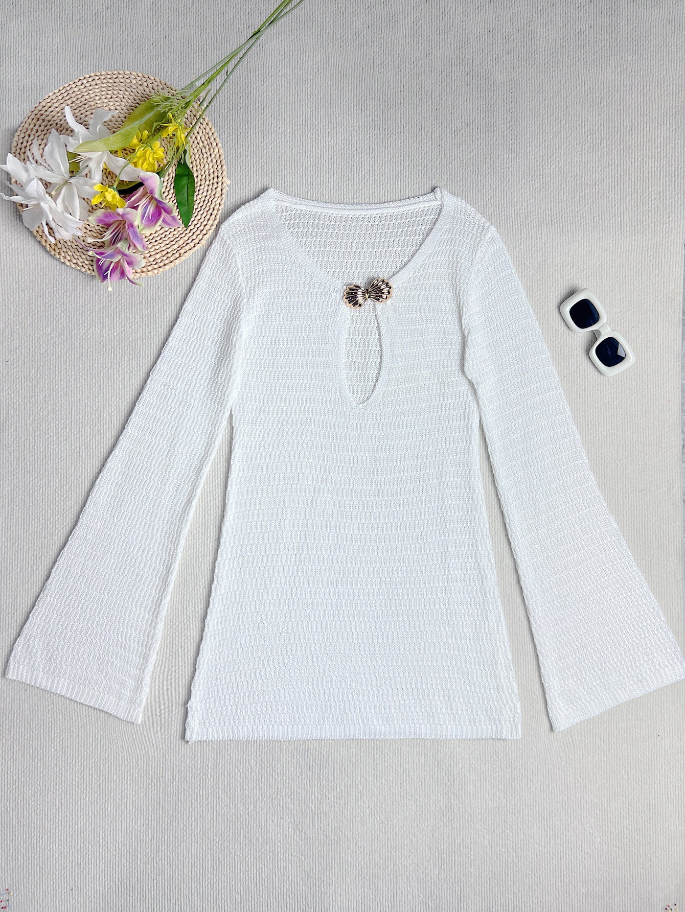 Butterfly Crochet Mini Dress | White Long Sleeve Cover Up with Keyhole Cut Out | noémi