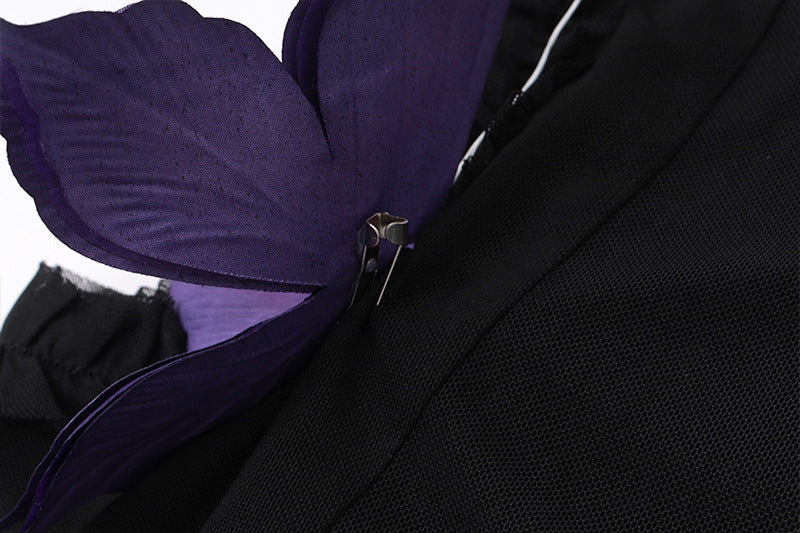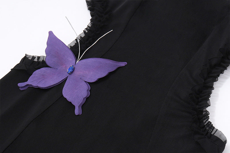 This ultra-flattering, off-shoulder halter dress hugs your curves in all the right places, featuring a daring side cut-out and whimsical 3D butterfly appliqué that adds a soft, romantic edge. Designed in a sculpting slim fit with a flowing hem, it’s your go-to for holiday parties, rooftop evenings, or a night of champagne and confidence.