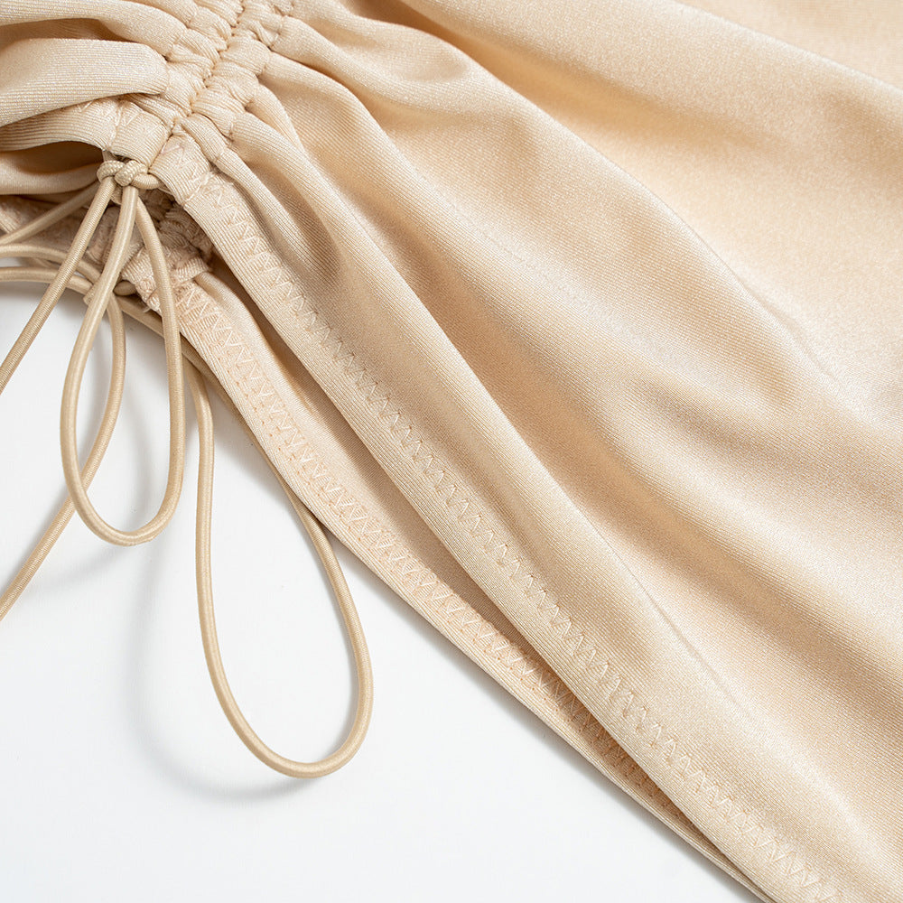 Step into confidence and style with Light Nylon Draped Dress the ultimate blend of sexy and sophisticated. Designed to hug your curves with a flattering drawstring waist, this bodycon dress accentuates your silhouette while keeping you comfortable all day and night. The sleek solid color and lightweight nylon fabric make it perfect for anything from a glamorous night out to a chic daytime look. Whether you're turning heads on the dance floor or enjoying a casual brunch, this tight hip dress delivers effortless elegance with an edge. Elevate your wardrobe with a piece that’s as versatile as you are.
