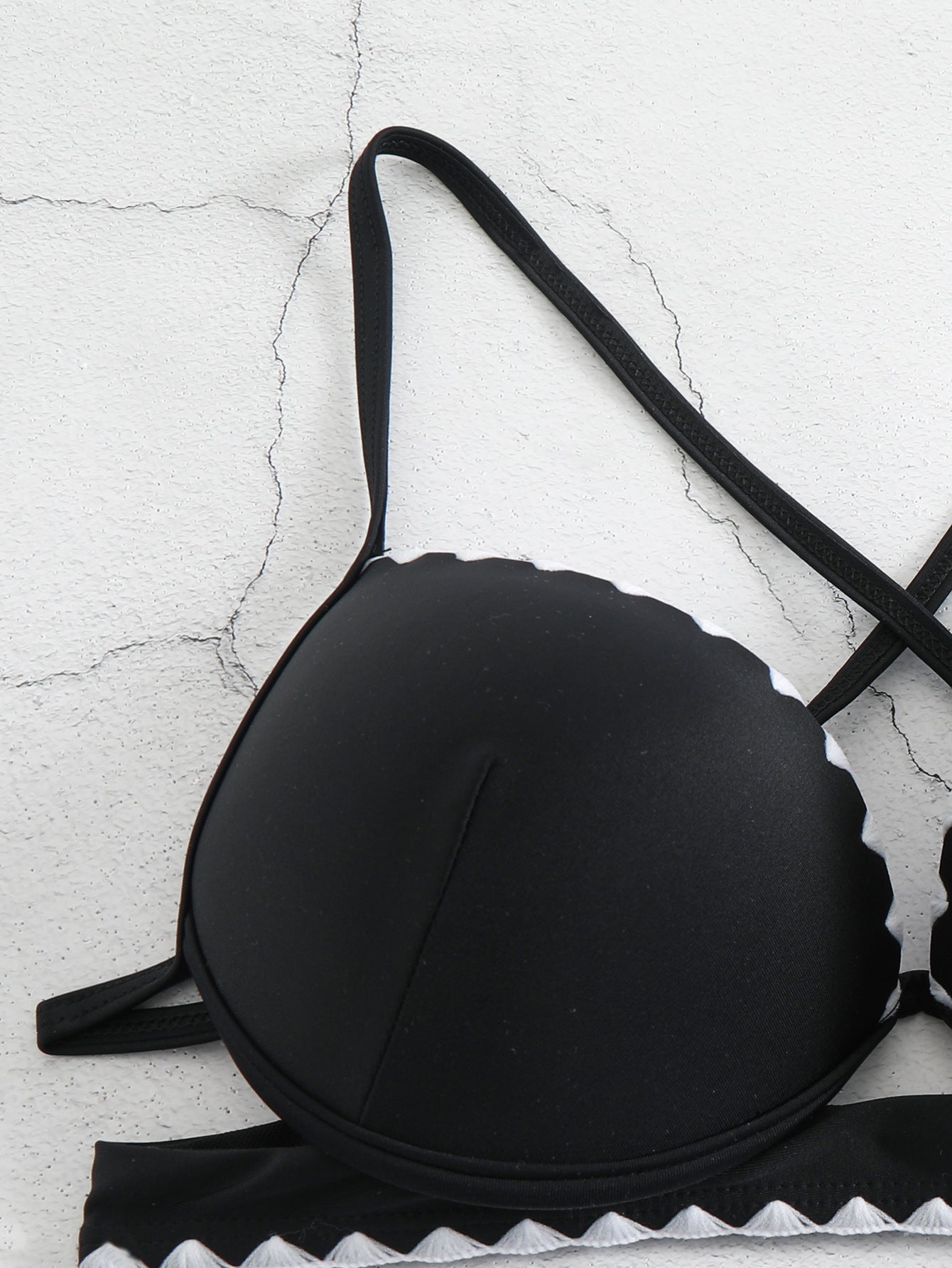 Designed with a structured top and waist-slimming bottom, this two-piece swimsuit brings bold contrast and clean lines to your beachside look.