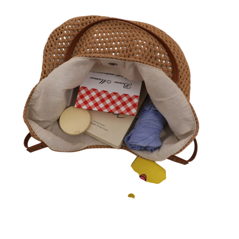 Adorable summer purse! I love the shape feel of this purse. It's big enough for all my essentials. Goes with almost any any outfit. Would recommend it!