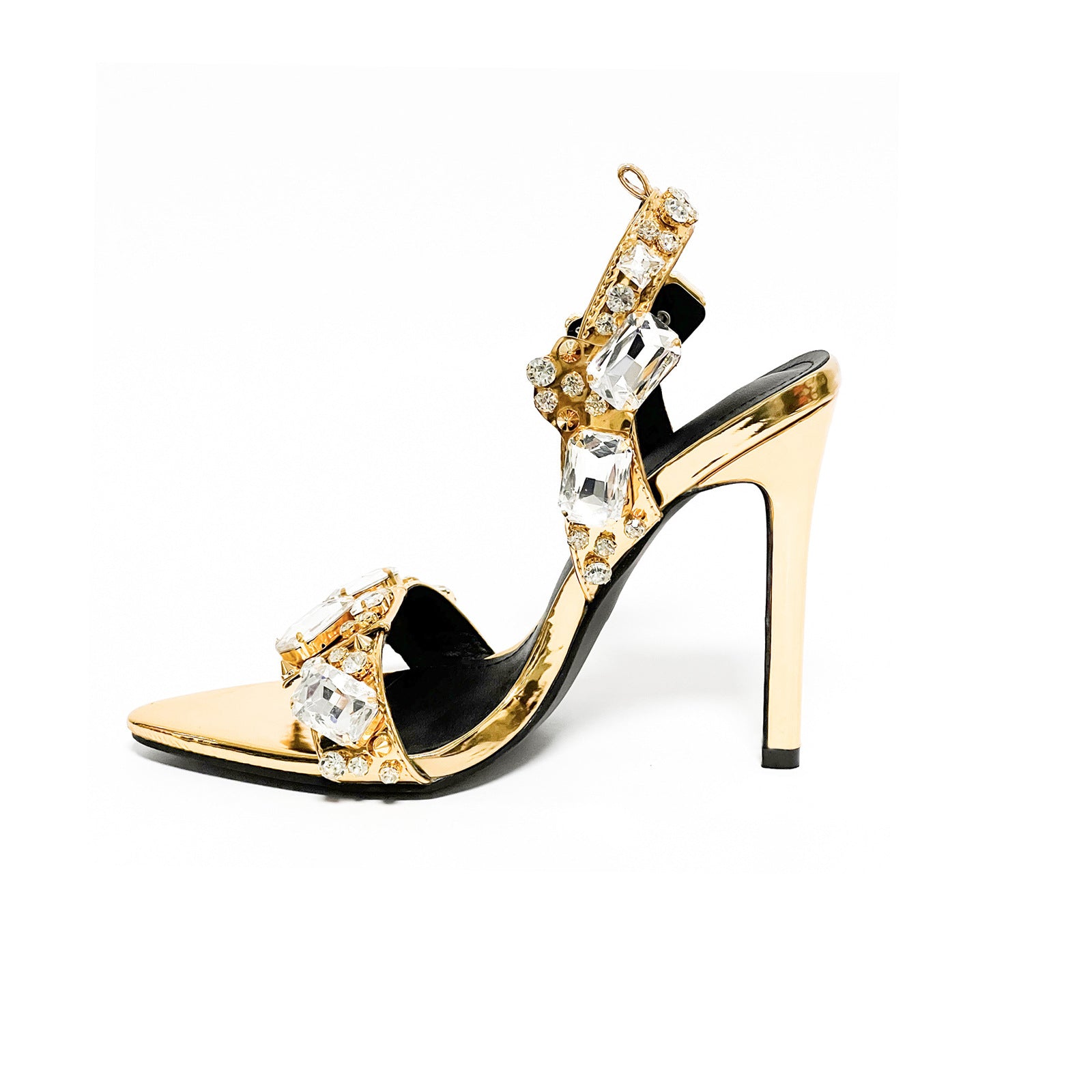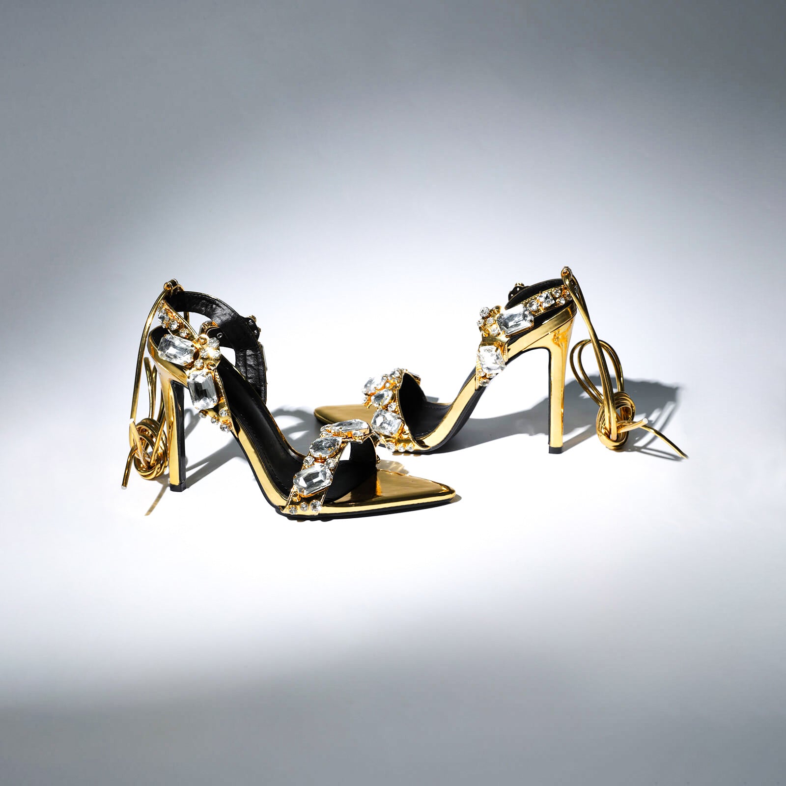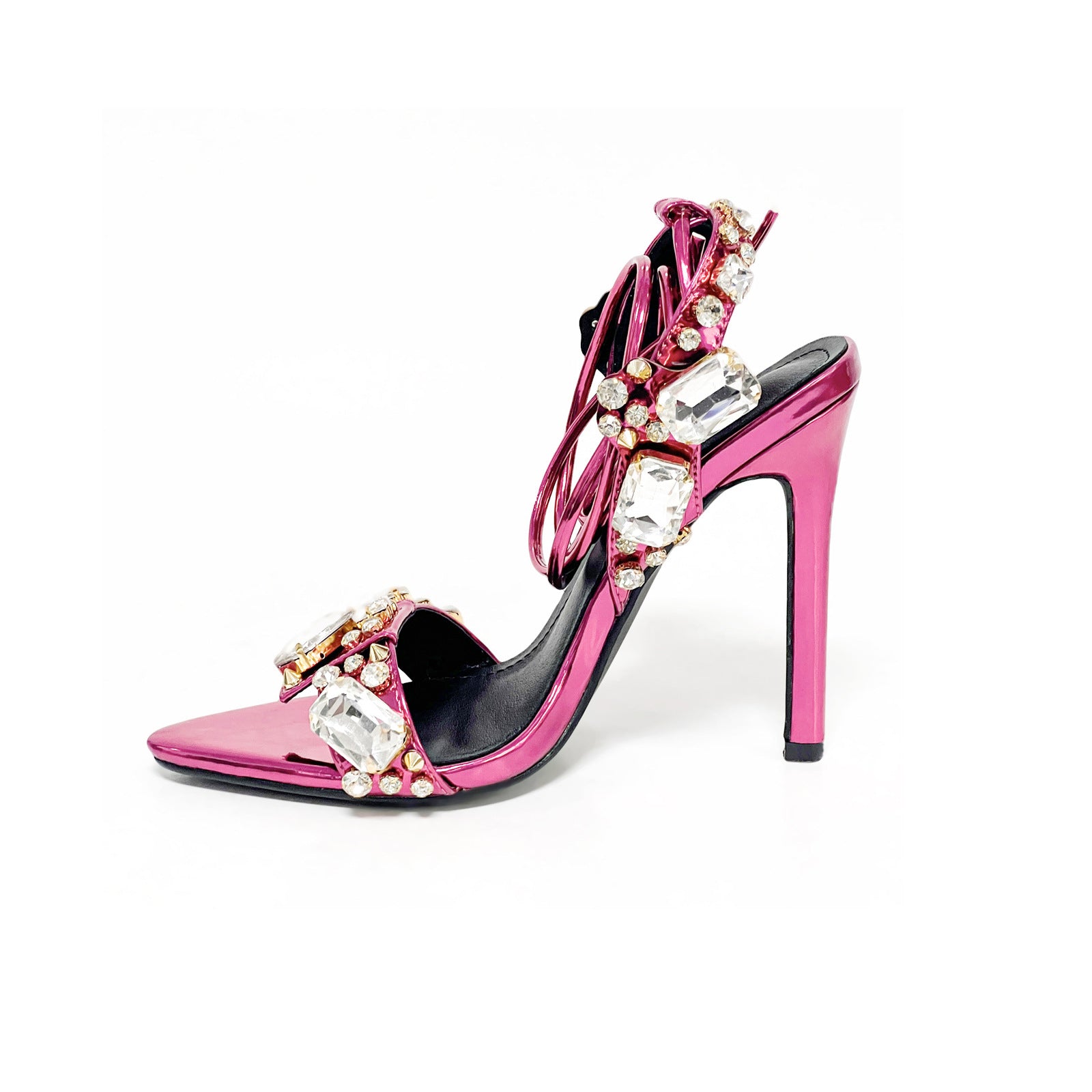 Crystal Embellished Metallic Heels | 11cm Rhinestone Lace Up High Heels | Pointed & Open Toe Sandals | noémi