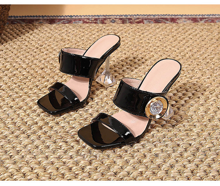 Crystal Heeled Mules | French Diamond Peep Toe Sandals | noémi