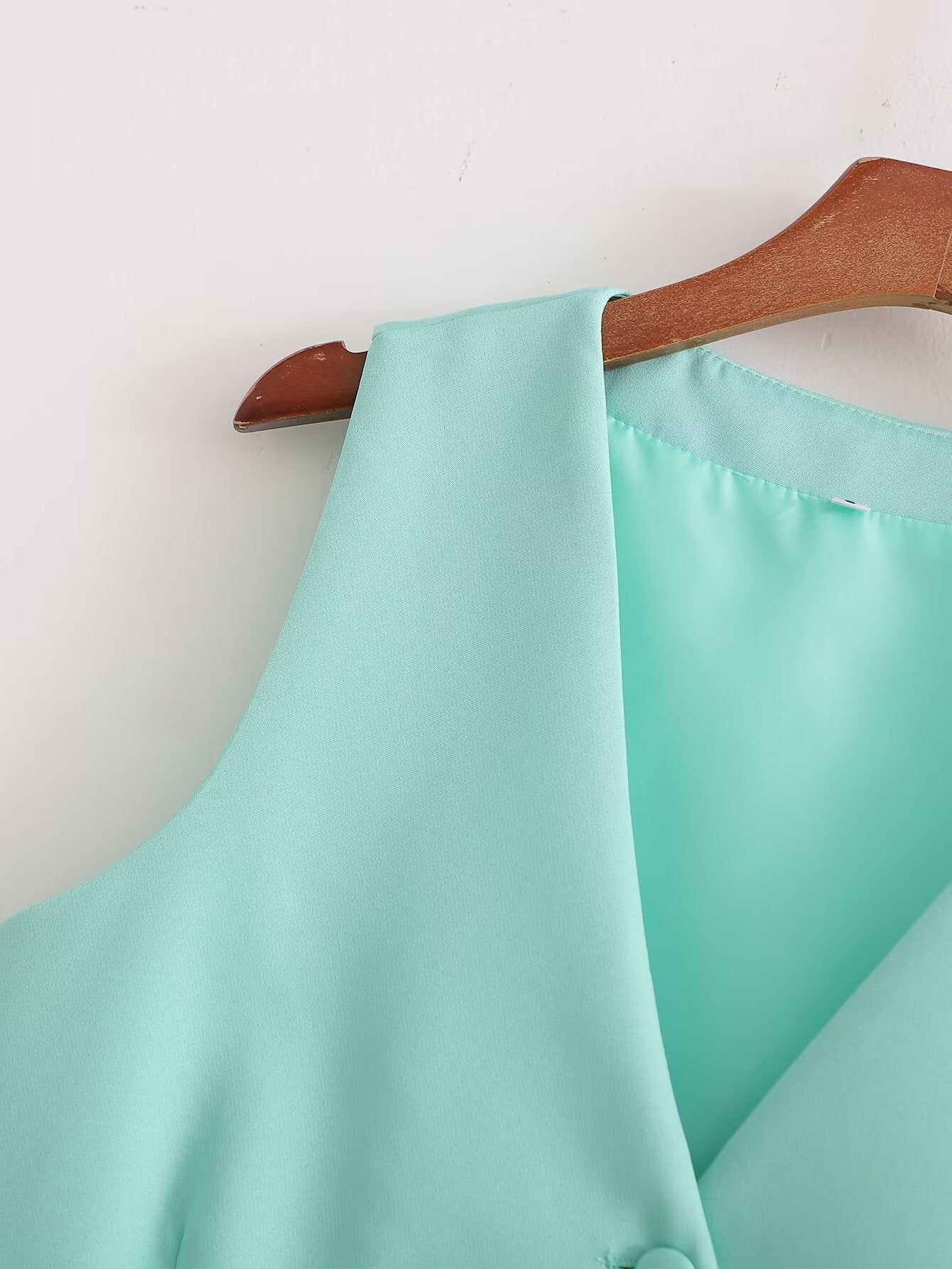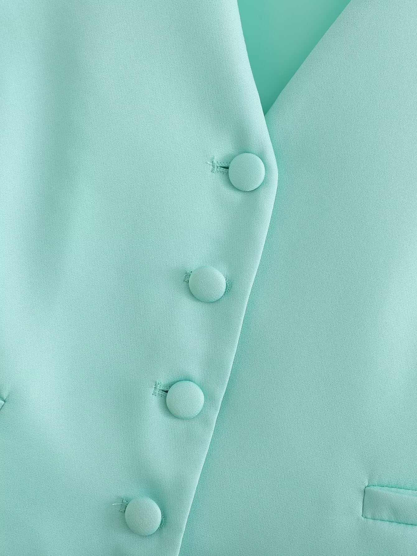 Featuring a double-breasted short cardigan vest and matching casual shorts, this solid color set is your go-to for easy, breezy sophistication.