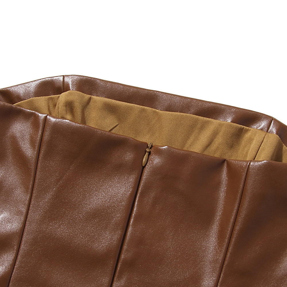 Step out in bold elegance with noémi’s Autumn Winter Faux Leather Midi Dress.