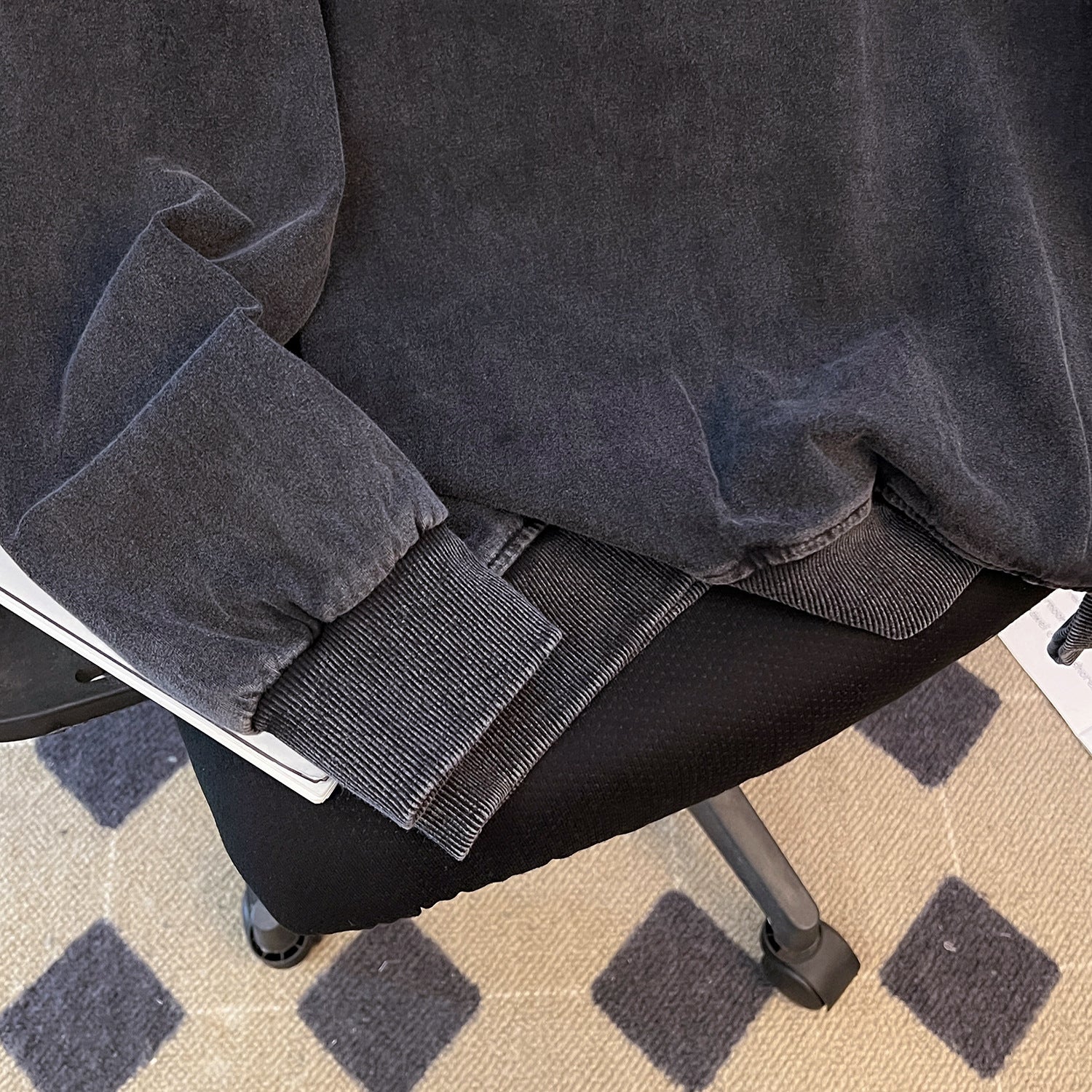 Fleece Lined Bow Sweater | Washed Black, Thickened Loose Fit | noémi