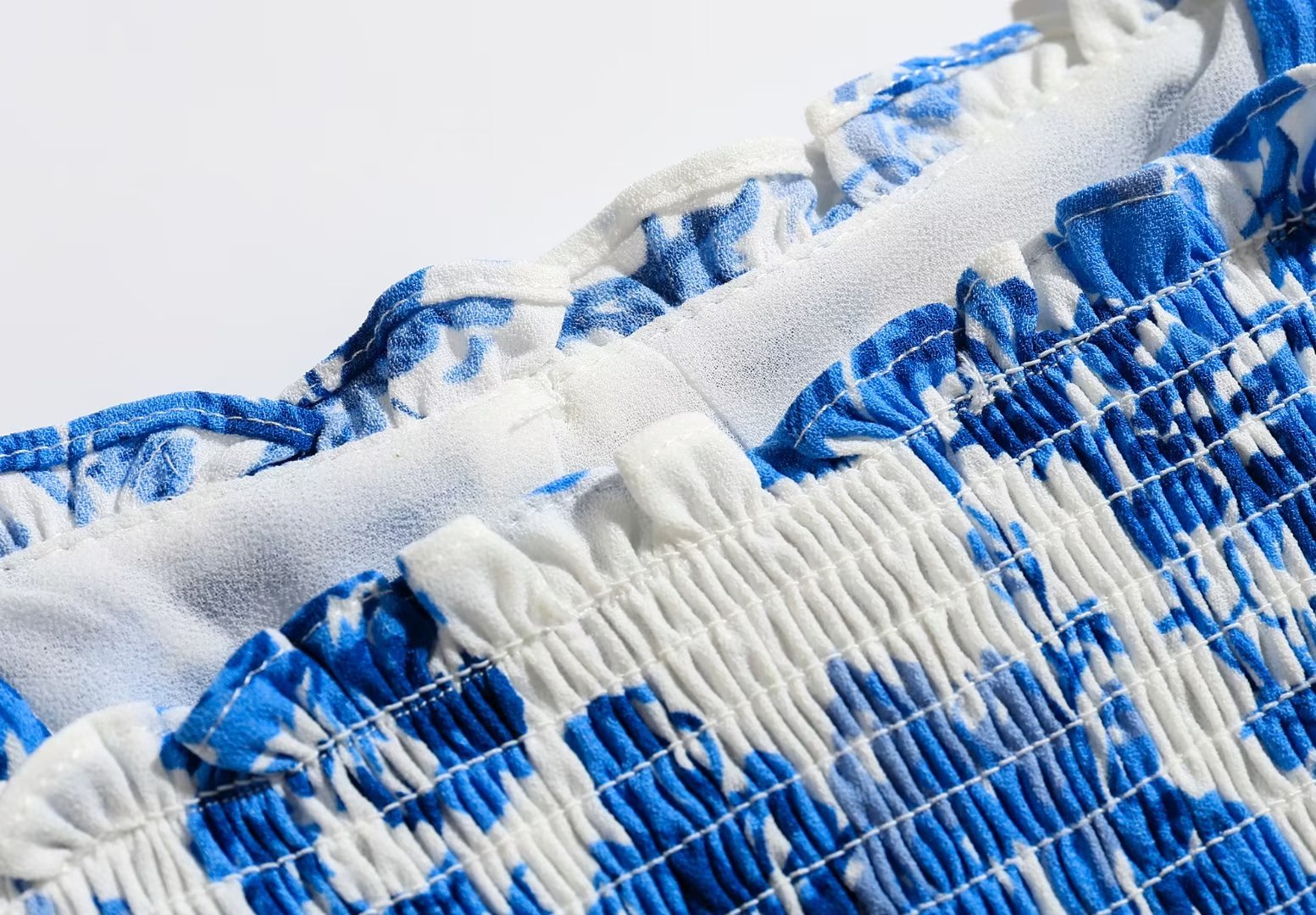 Drenched in a timeless blue-and-white floral print, this blouse brings modern femininity with a vintage twist.