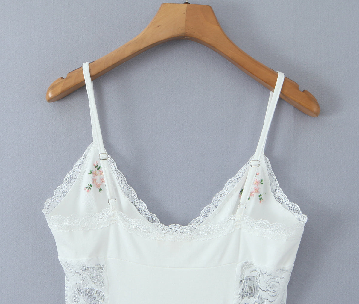 Floral Embroidered Lace Patchwork Knit Sling Dress | noémi