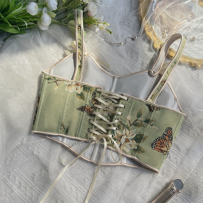 Floral Print Bow Shoulder Strap Corset Vest with Fitted Silhouette | noémi