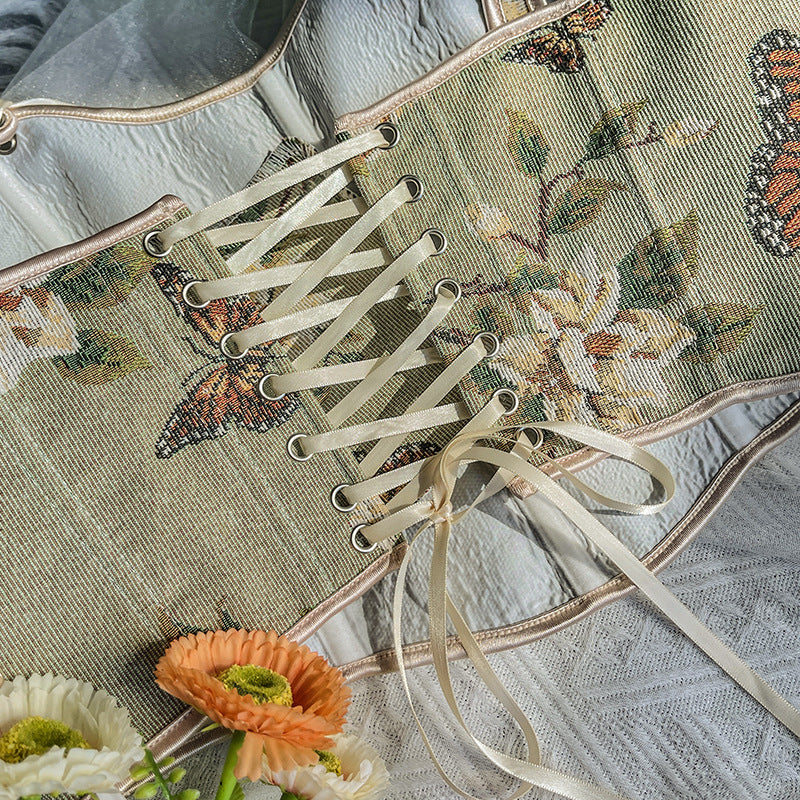 This floral corset vest brings soft details and structured design together in one effortless piece.