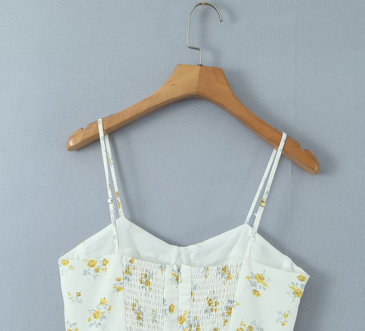 Featuring a delicate floral print that bursts with life, this dress is designed to accentuate your curves with expertly ruched waist trimming and a built-in steel bracket for perfect support.