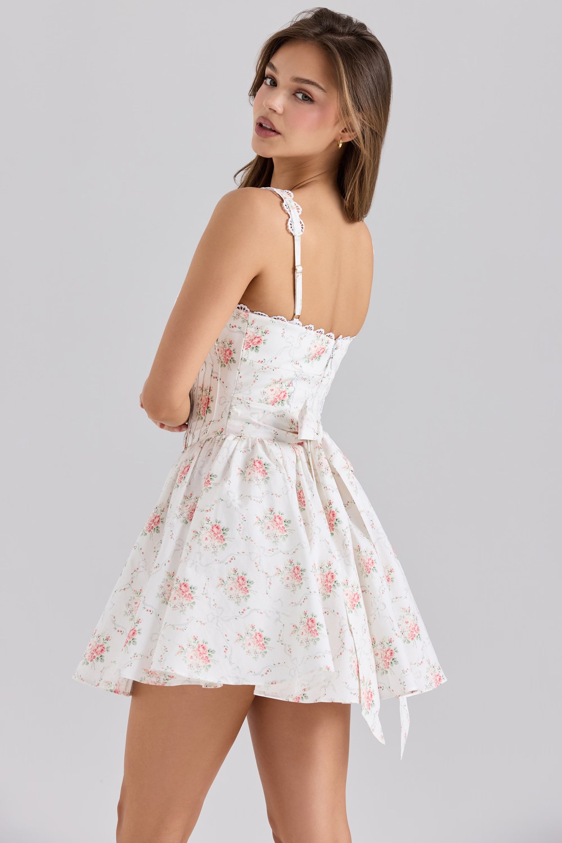 Floral Sweet Rose Print Pleated Lace Waist Slip Dress with Bowknot | noémi