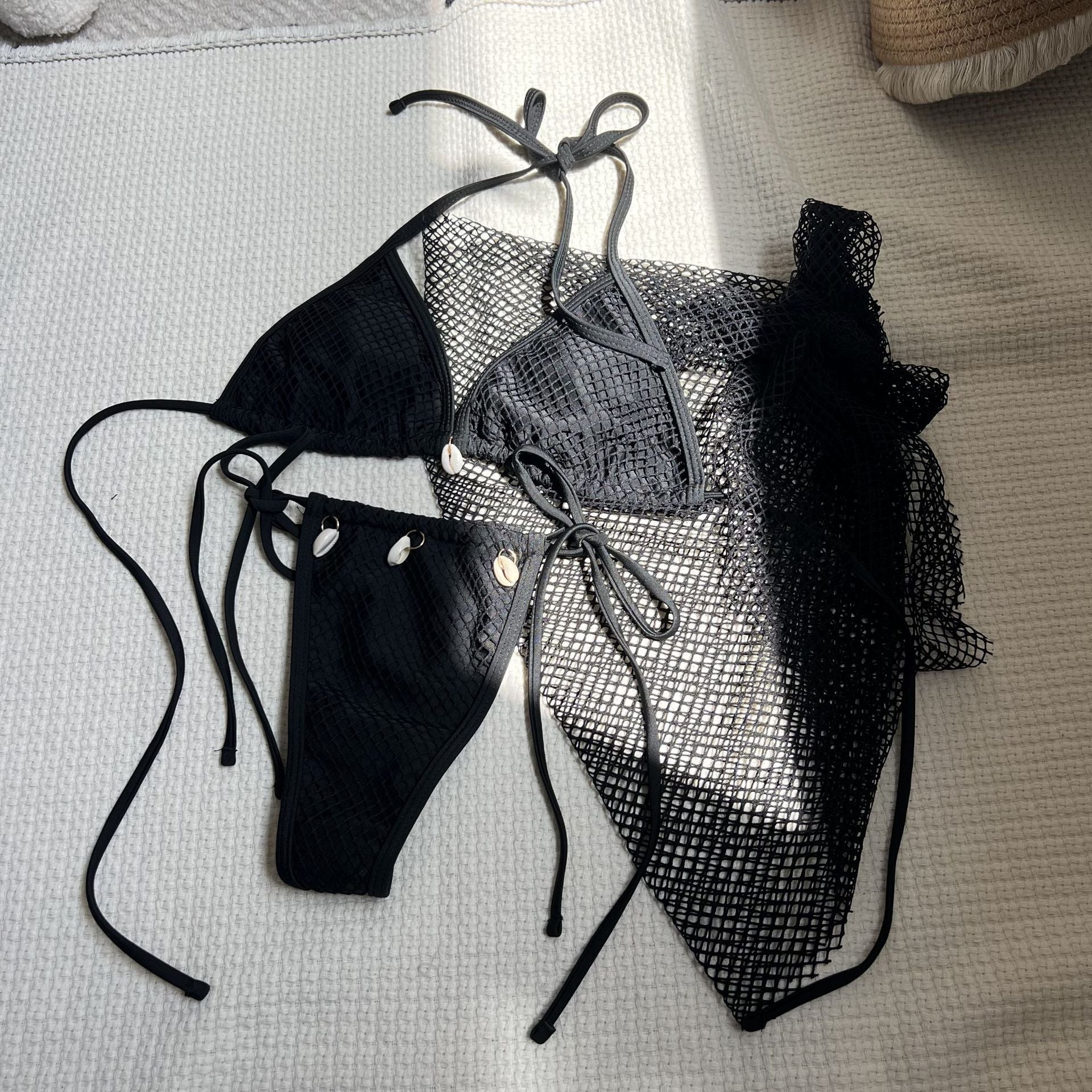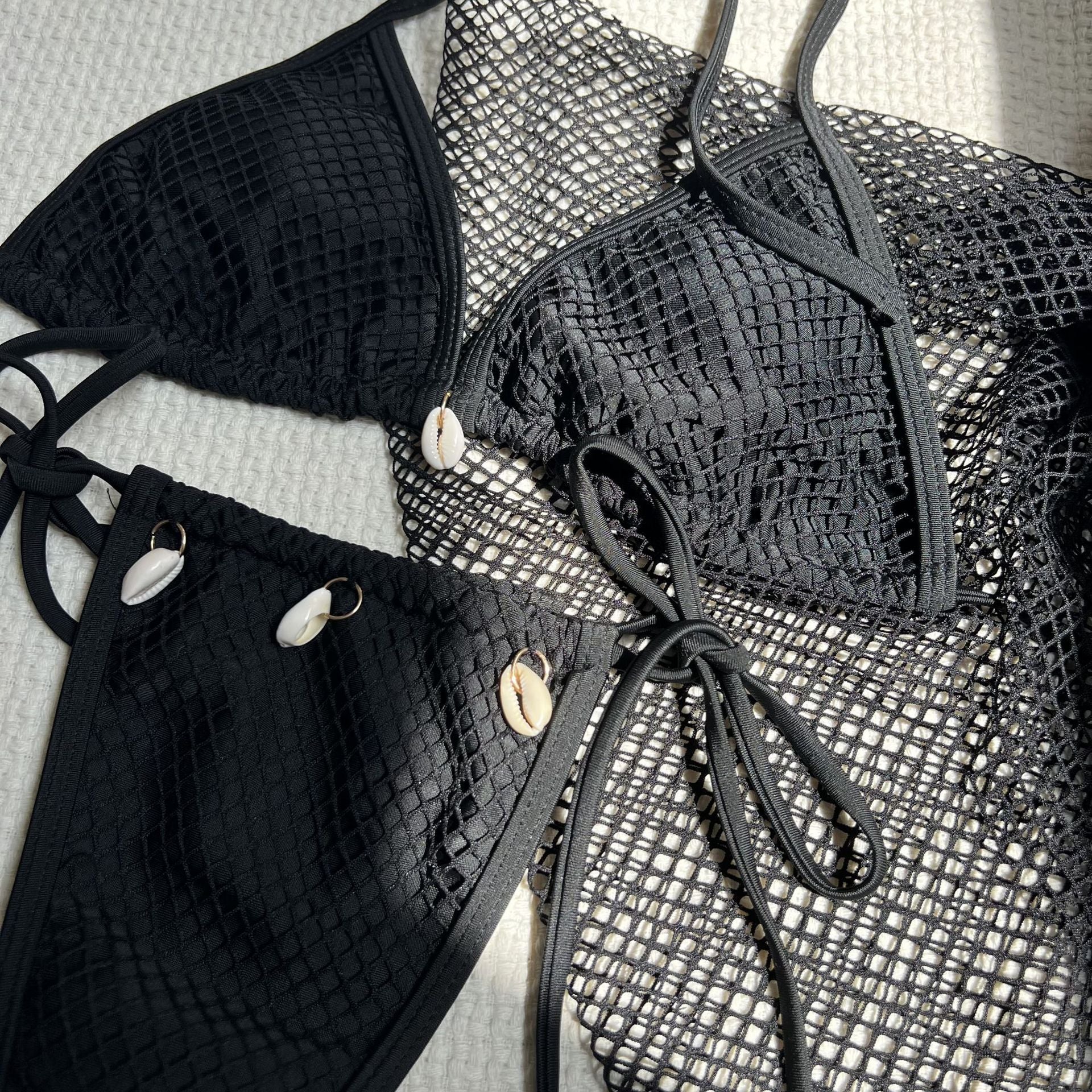 Step into summer with the Fresh Breeze Beach Shell 3-Piece Net Bikini Set—your ultimate beachside companion.