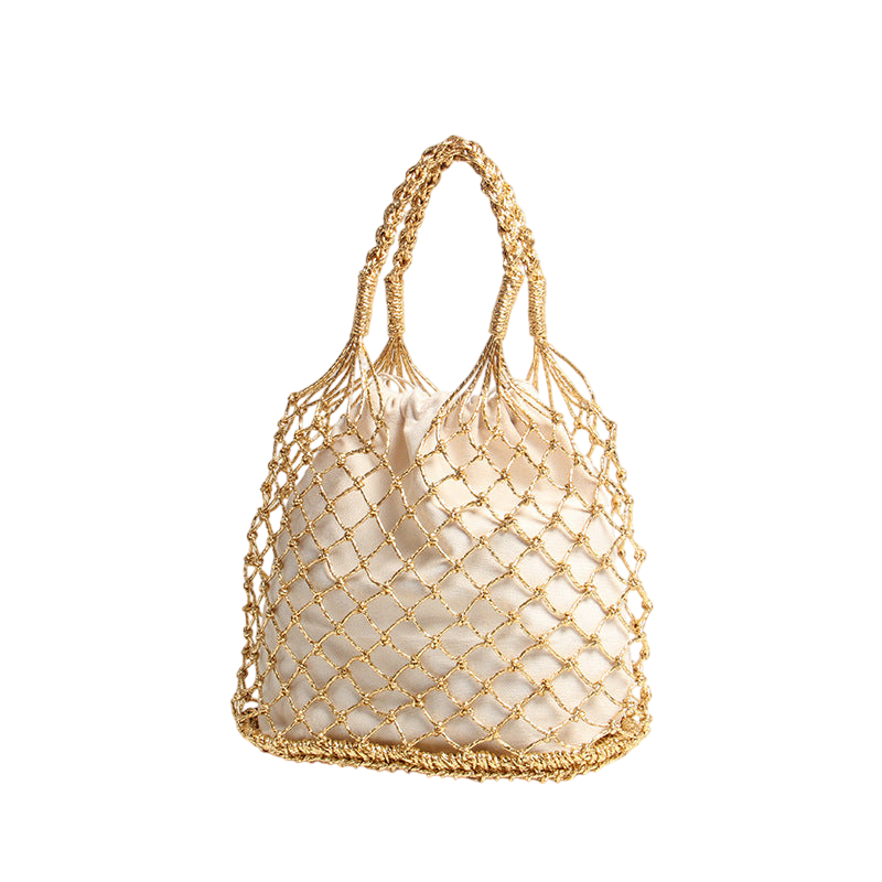 Gold Hollow-Out Straw Beach Tote – Woven Cut-Out Handbag | noémi