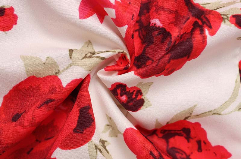 - All-over red rose print