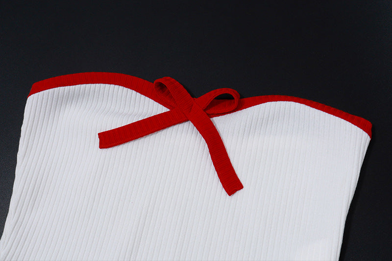 Halter Bow Tie Knit Crop Top | Sleeveless Ribbed Tube Vest | noémi