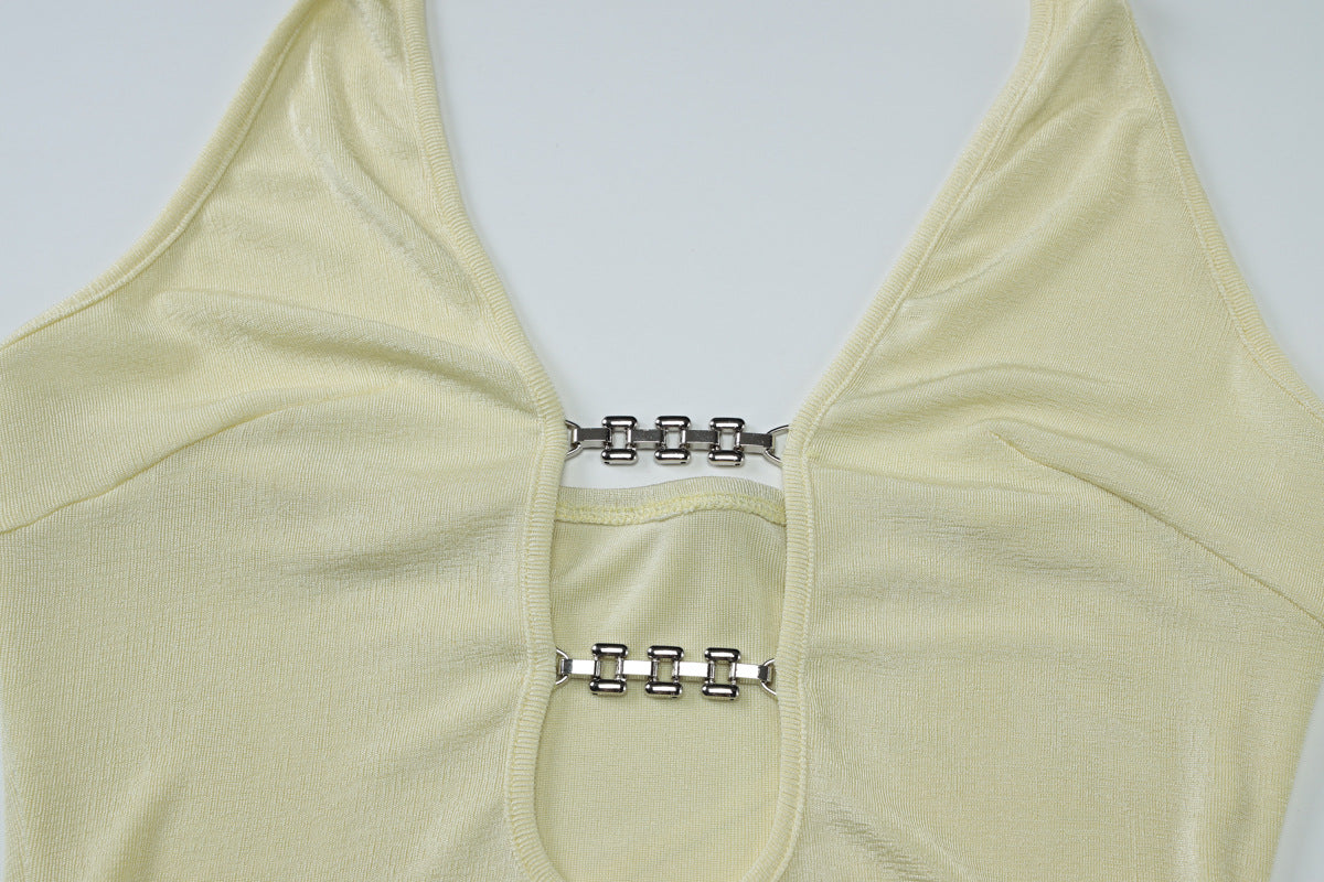 Halter Dress | Hollow Out Slim Fit Maxi with Iron Chain Detail & Side Slit | noémi