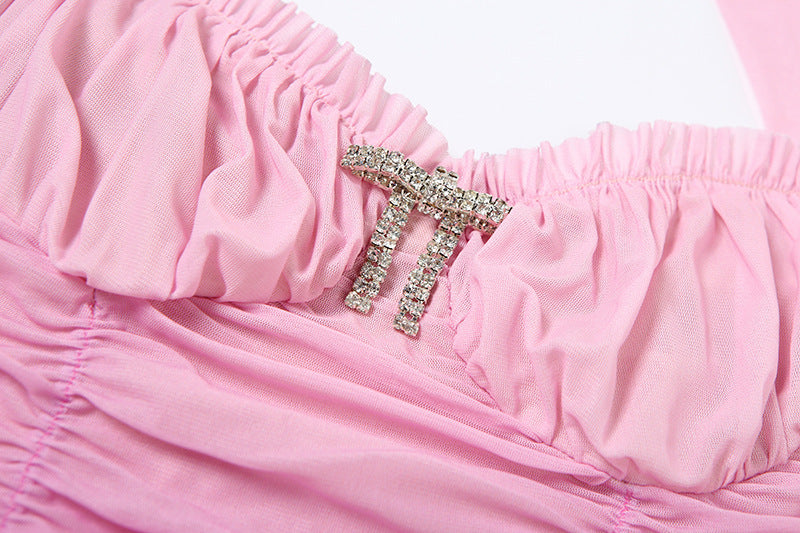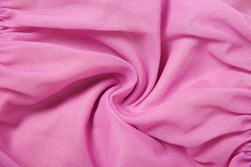 - Soft mesh fabric + ruched pleats for a snatched, sculpted silhouette