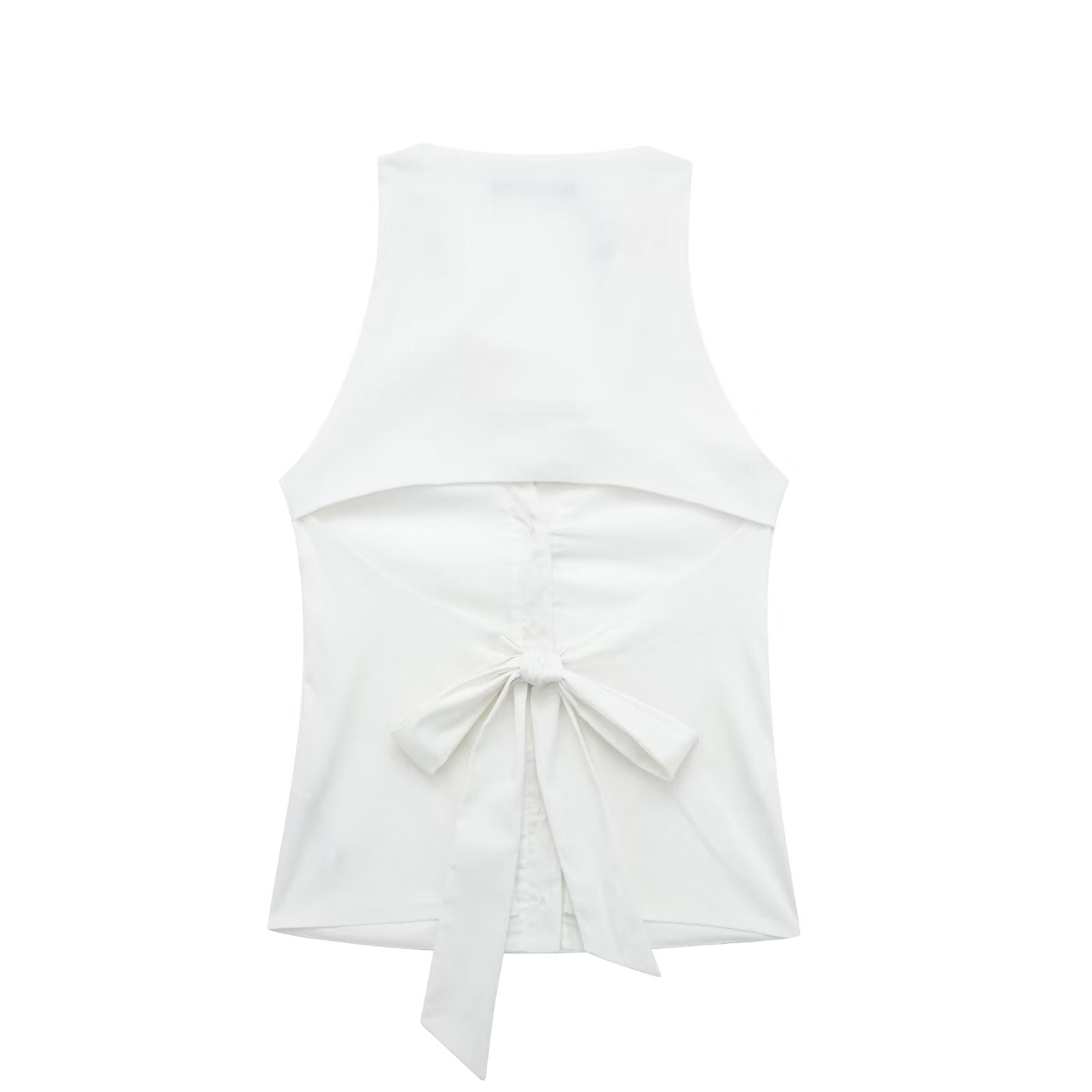 This sleeveless, slim-fit top features a chic collar and an irresistible backless lace-up design that adds just the right amount of edge and elegance.