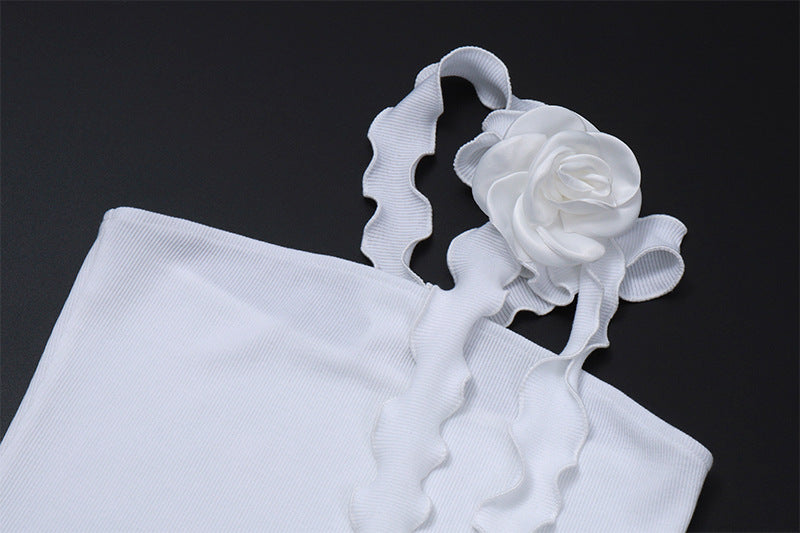 Halter Top | 3D Rose Strapless Vest | Backless Knit Crop Top for Women | noémi
