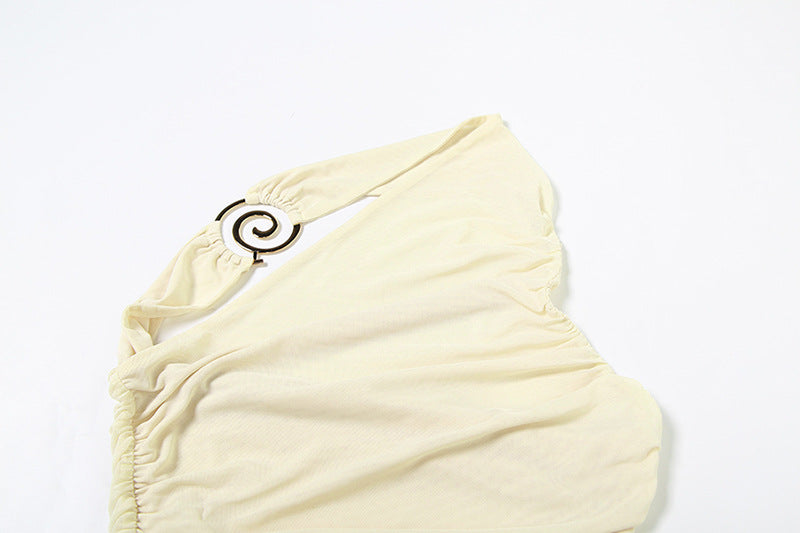 Step into the spotlight with the noémi Halter Pleated Crop Top – designed for the bold, the free, and the effortlessly stylish. With its one-shoulder cut, sleek metal ring detail, and curve-hugging pleats, this top is your go-to piece for a sizzling summer look.
