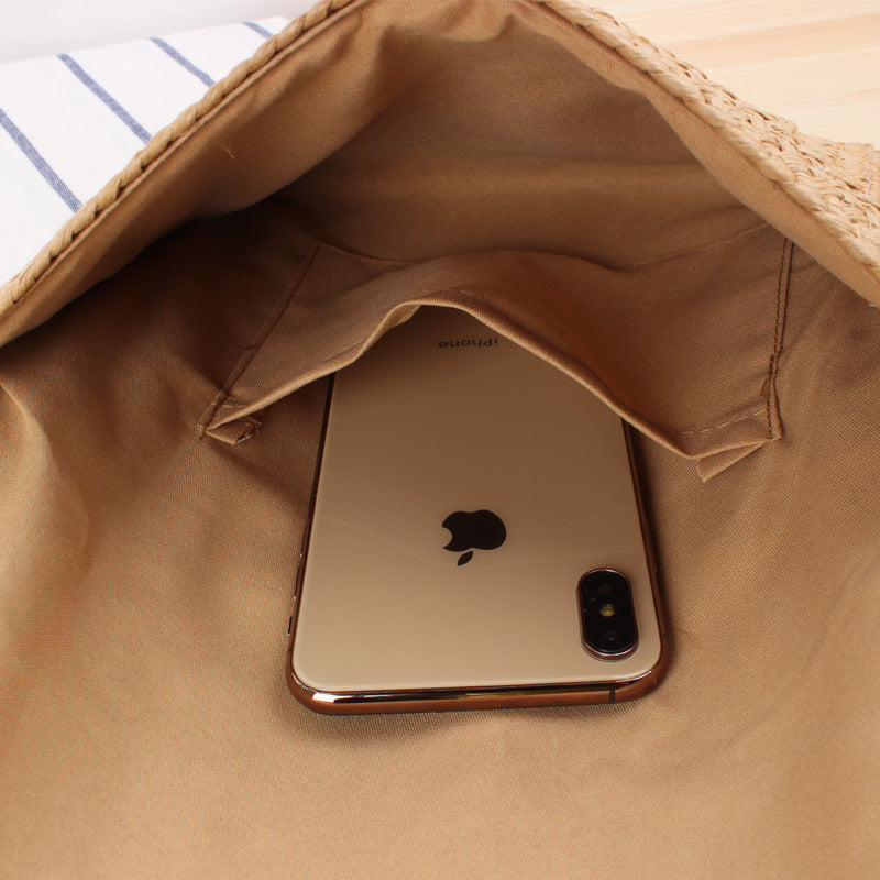 Handmade Straw Shoulder Bag | Woven Paper Braid Beach Purse with Magnetic Closure | noémi
