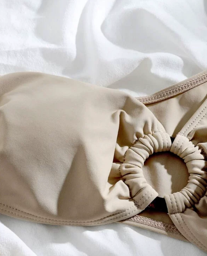 High Waist Solid Color Bikini Set with Shoulder Strap Detail for Women | noémi