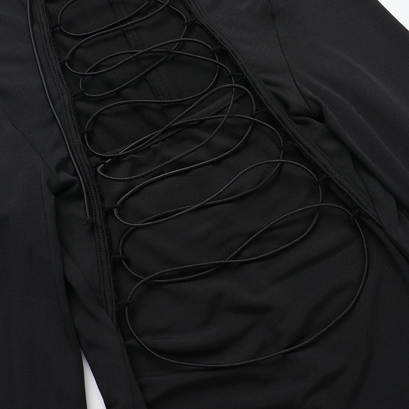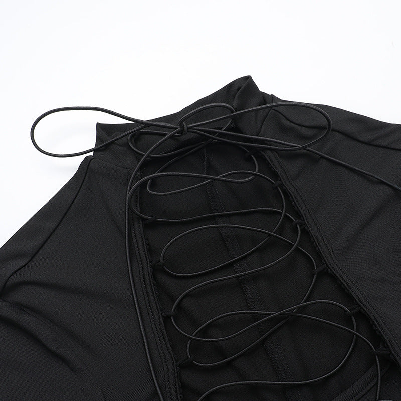 The long sleeves add a touch of sophistication, balancing out the sultry cutouts for an effortlessly chic look.