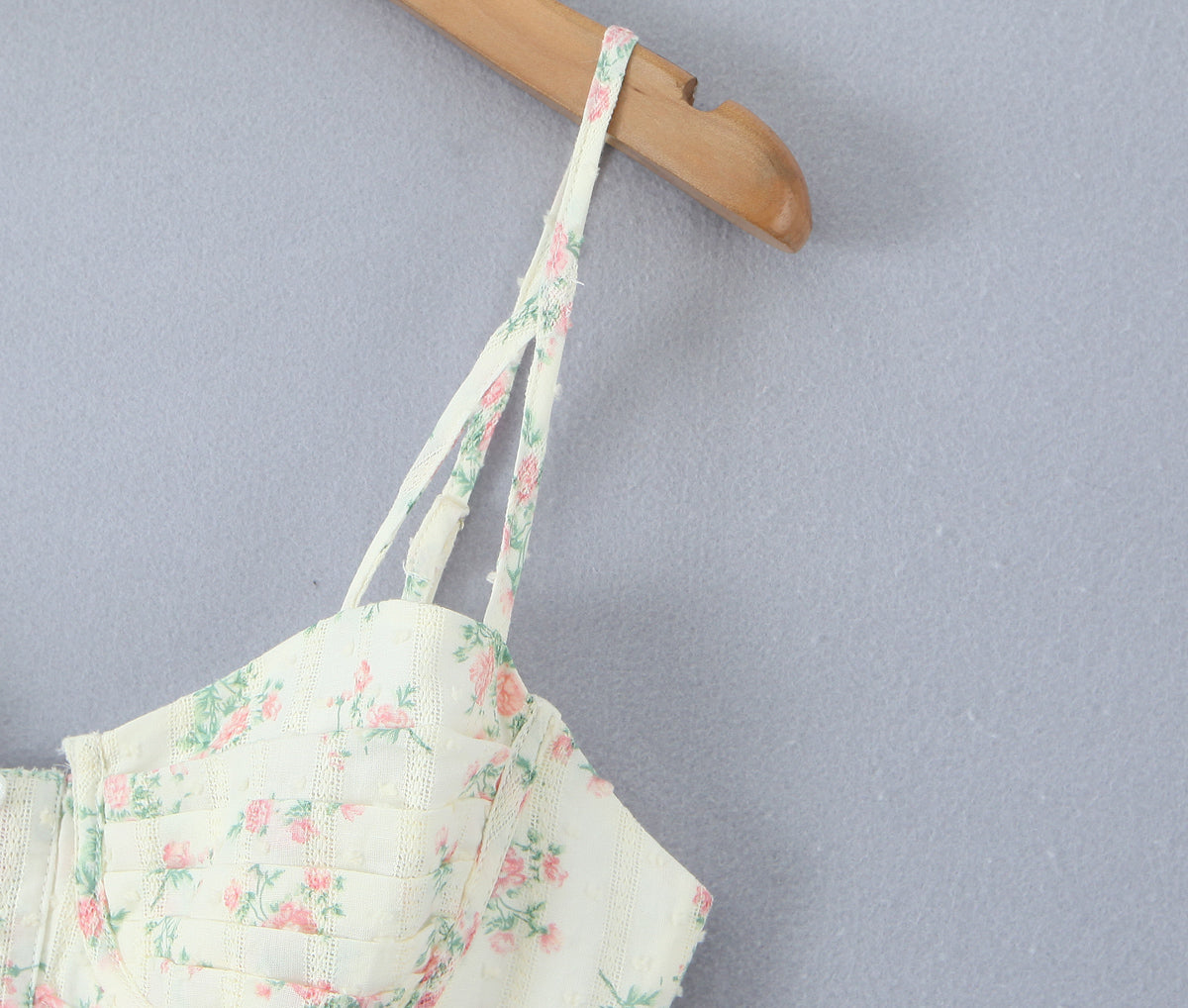 Featuring soft lace embroidery, a floral printed fabric, and a boned corset bodice that cinches the waist just right, this dress is designed to make you feel feminine, confident, and unforgettable.