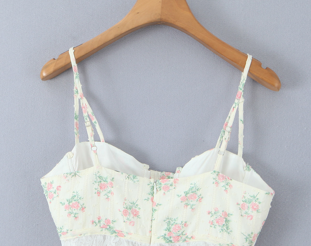 Lace Embroidered Corset Dress | Floral Print Boning Detail Waist Cinching Fit Spaghetti Straps | noémi