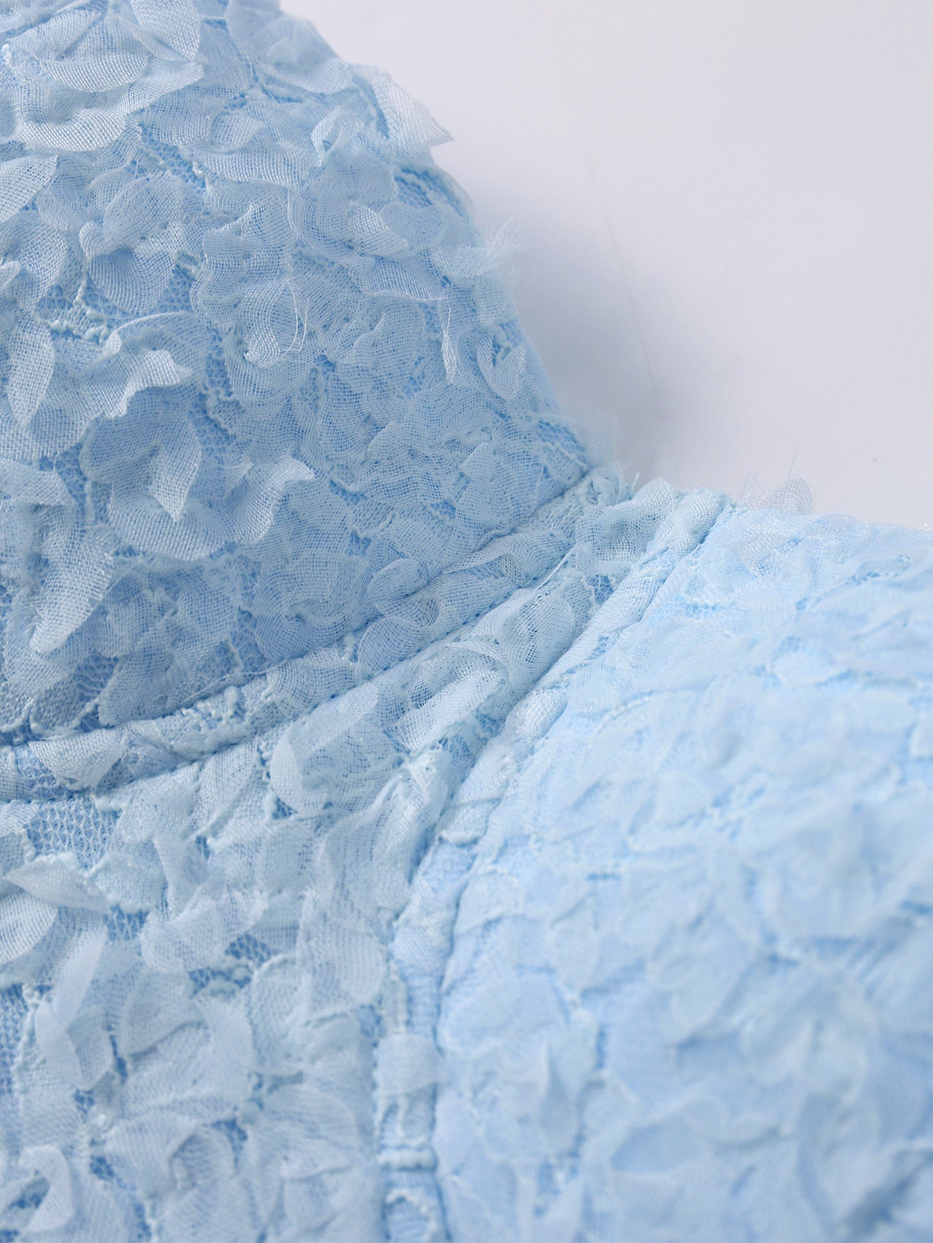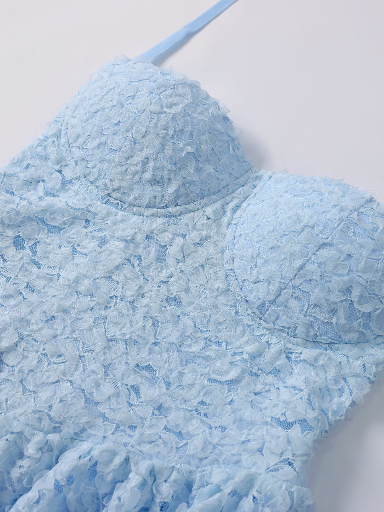 Featuring a stunning backless halter neckline and delicate lace jacquard fabric, this short A-line princess dress highlights your silhouette with grace and confidence.