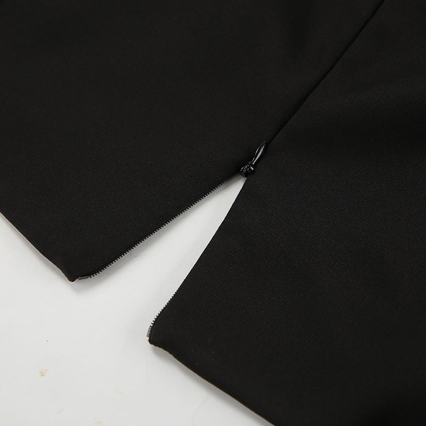 A subtle side slit adds ease of movement and a modern touch to the clean, structured shape.