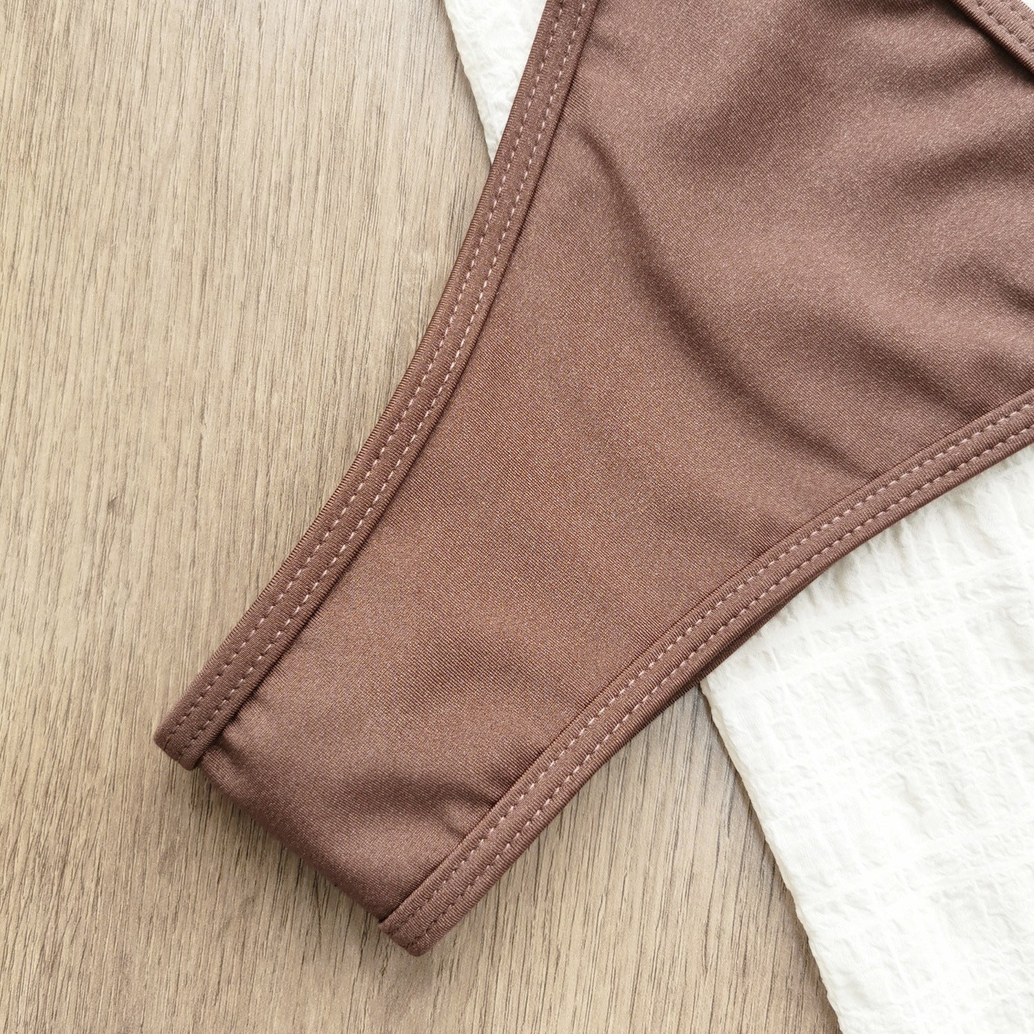 Low Waist Lace Up Split Bikini Set in Solid Color | noémi