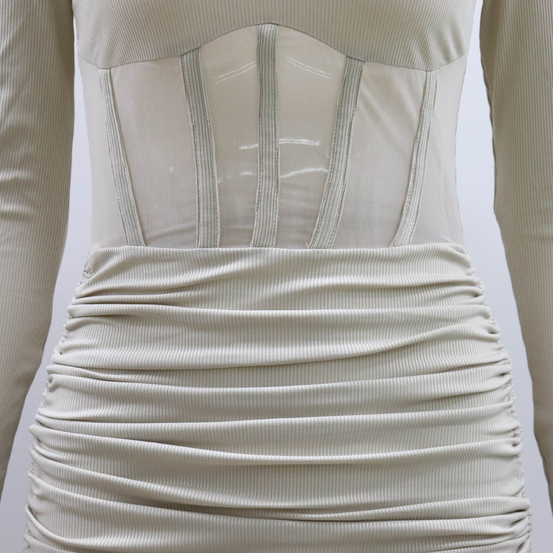This long sleeve mini dress features bold mesh cutouts and flattering pleats that hug your curves perfectly.