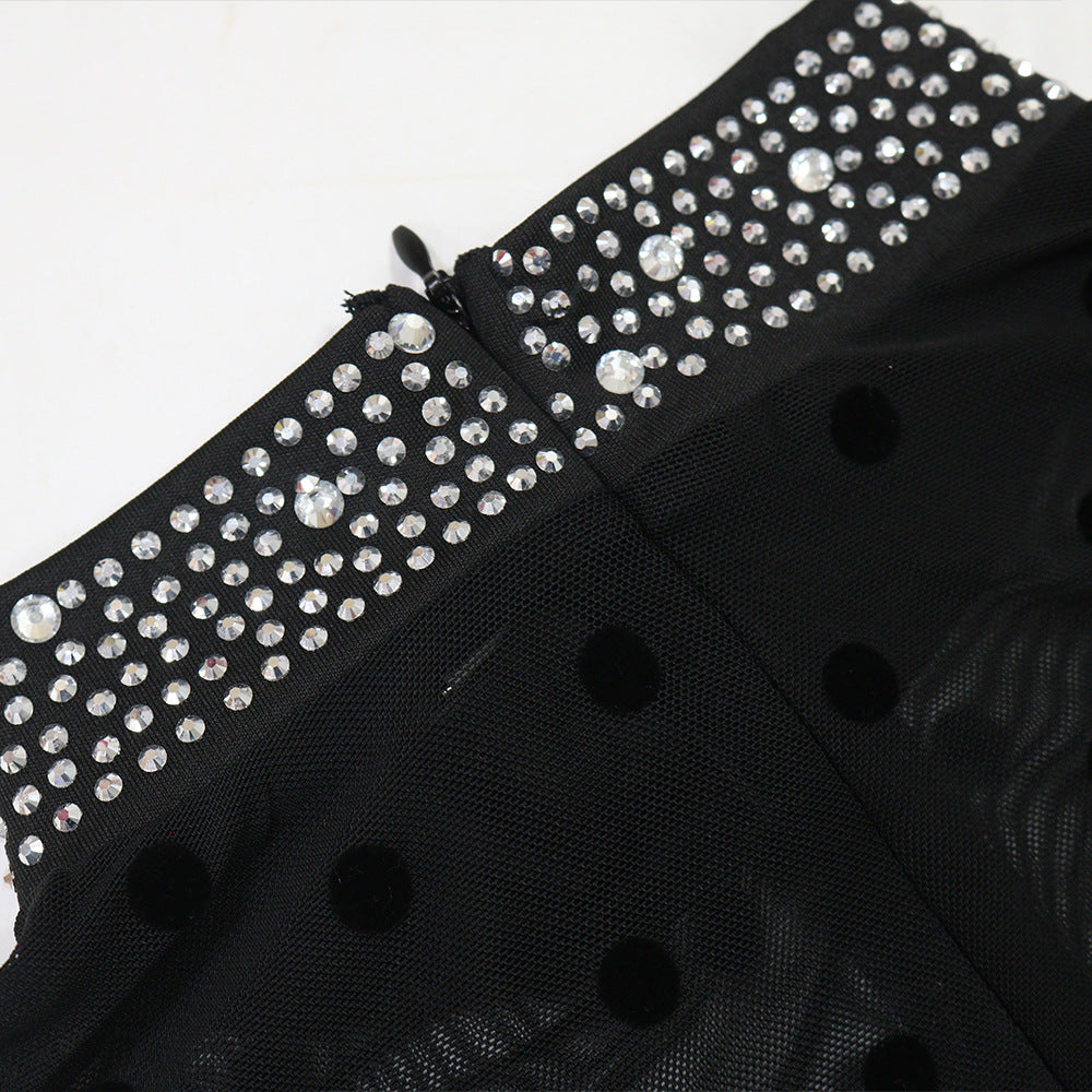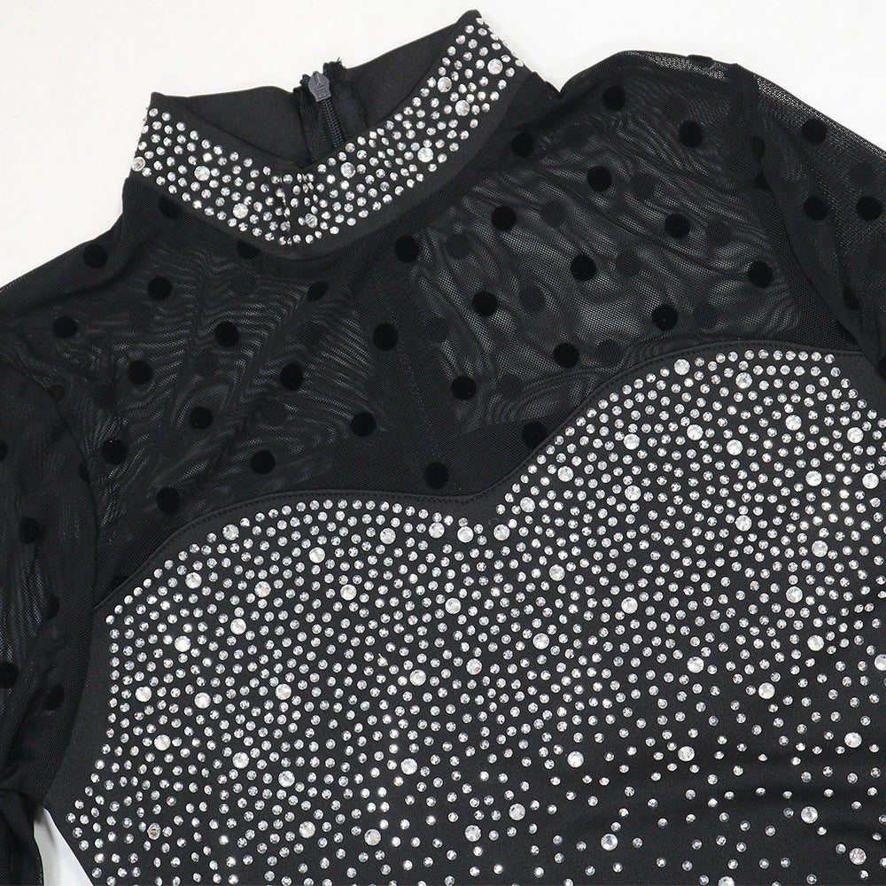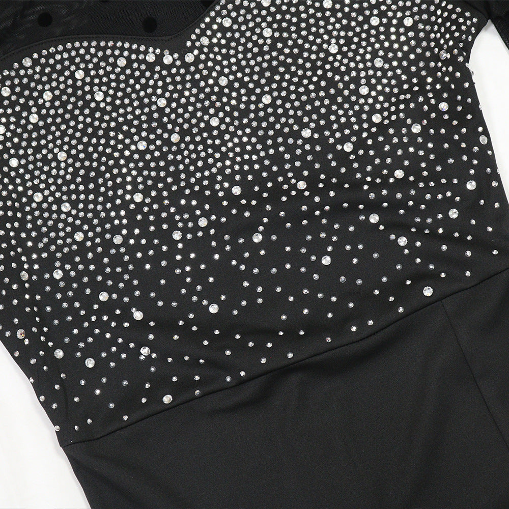 Elevate your evening look with the noémi Drilling Mesh Long Sleeve Dress — where elegance meets modern glamour.