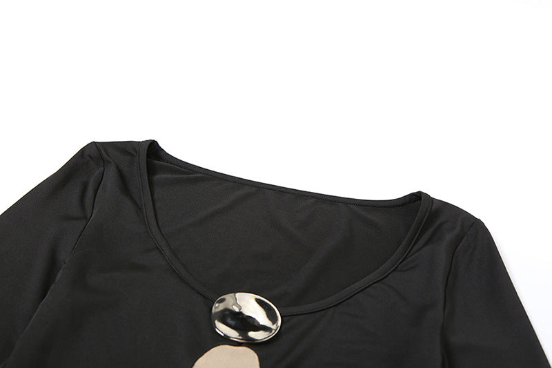 Mesh Patchwork V Neck Sheath Dress with Split Long Sleeves | noémi