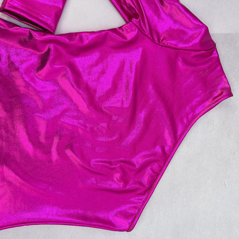 Step into the spotlight with noémi’s Metallic Coated Oblique Shoulder Dress — designed for women who want to own the night.